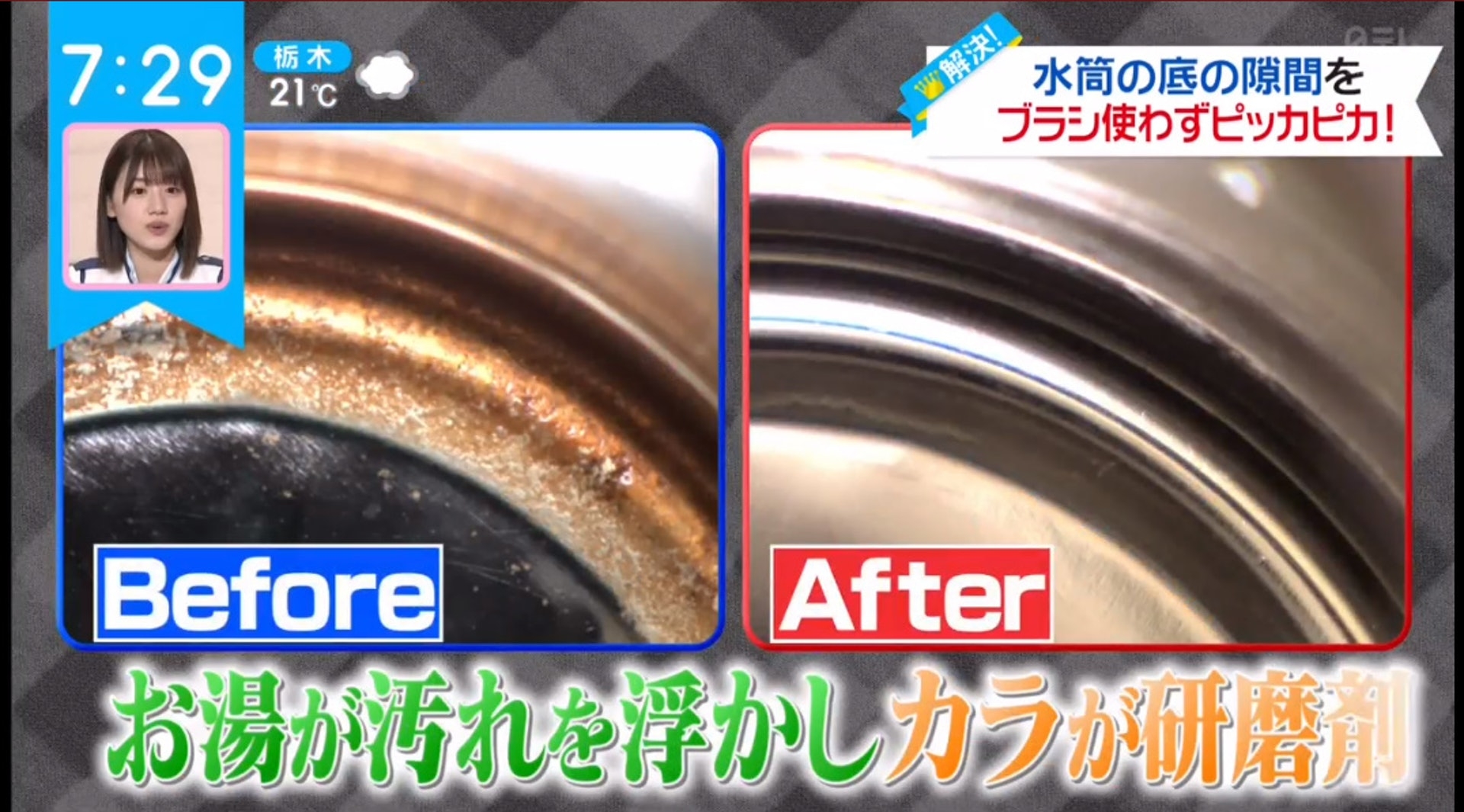 【家事常識/廚房小知識/清潔技巧】不少人以為保溫瓶只盛載清水或茶,用清水沖洗即可,沒有徹底清潔;另外,不少人會用燜燒杯焗湯或沖泡養生飲品,久而久之,瓶內壁及瓶蓋窿罅位置容易積聚頑固污漬。保溫瓶或燜燒杯若長期不徹底清潔,細菌滋生會影響健康。日本節目《ZIP!》邀請家事達人尾崎真,教大家用一款廚餘,只需1分鐘就能徹底清潔保溫瓶,效果驚人,即睇方法!