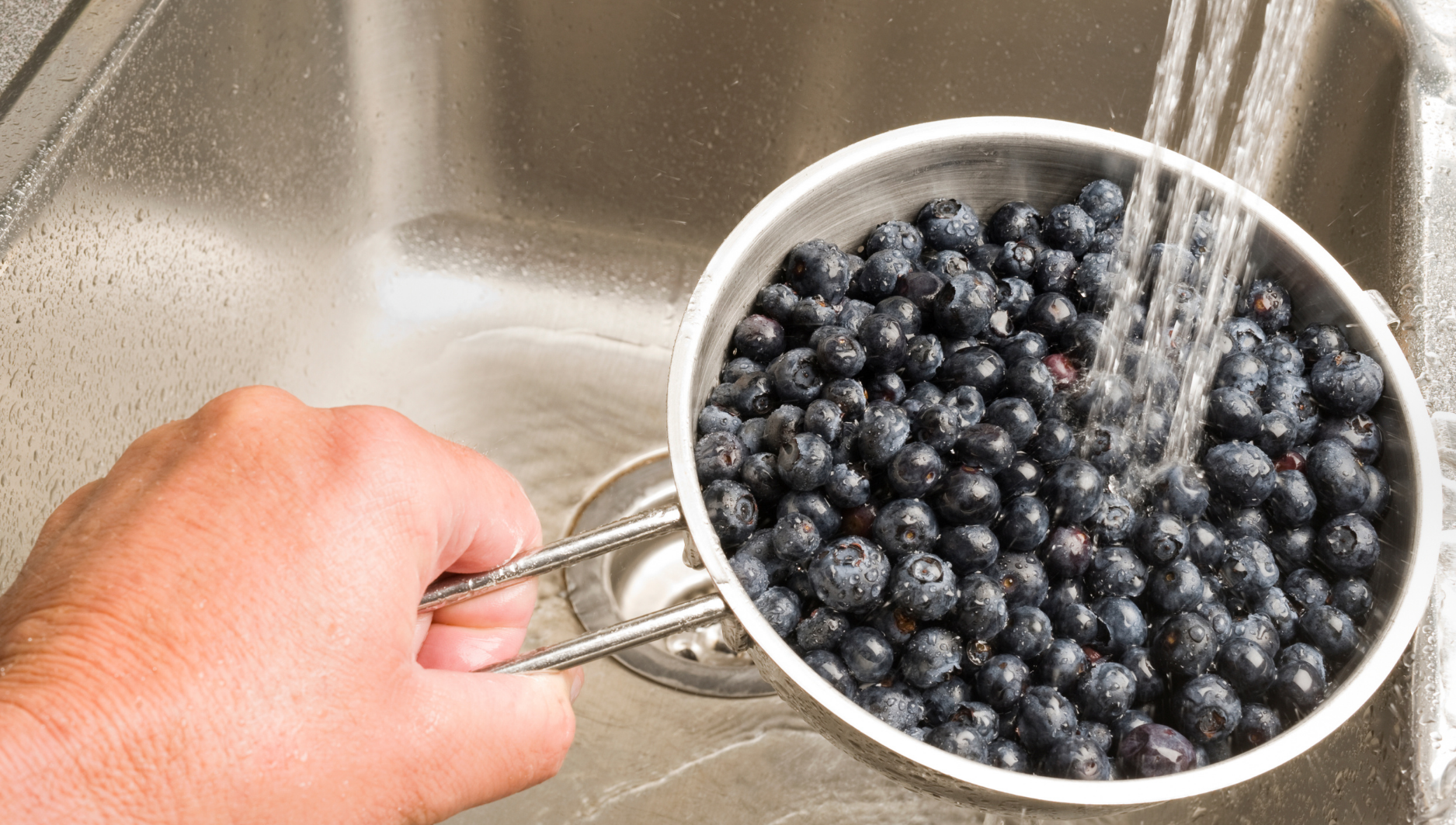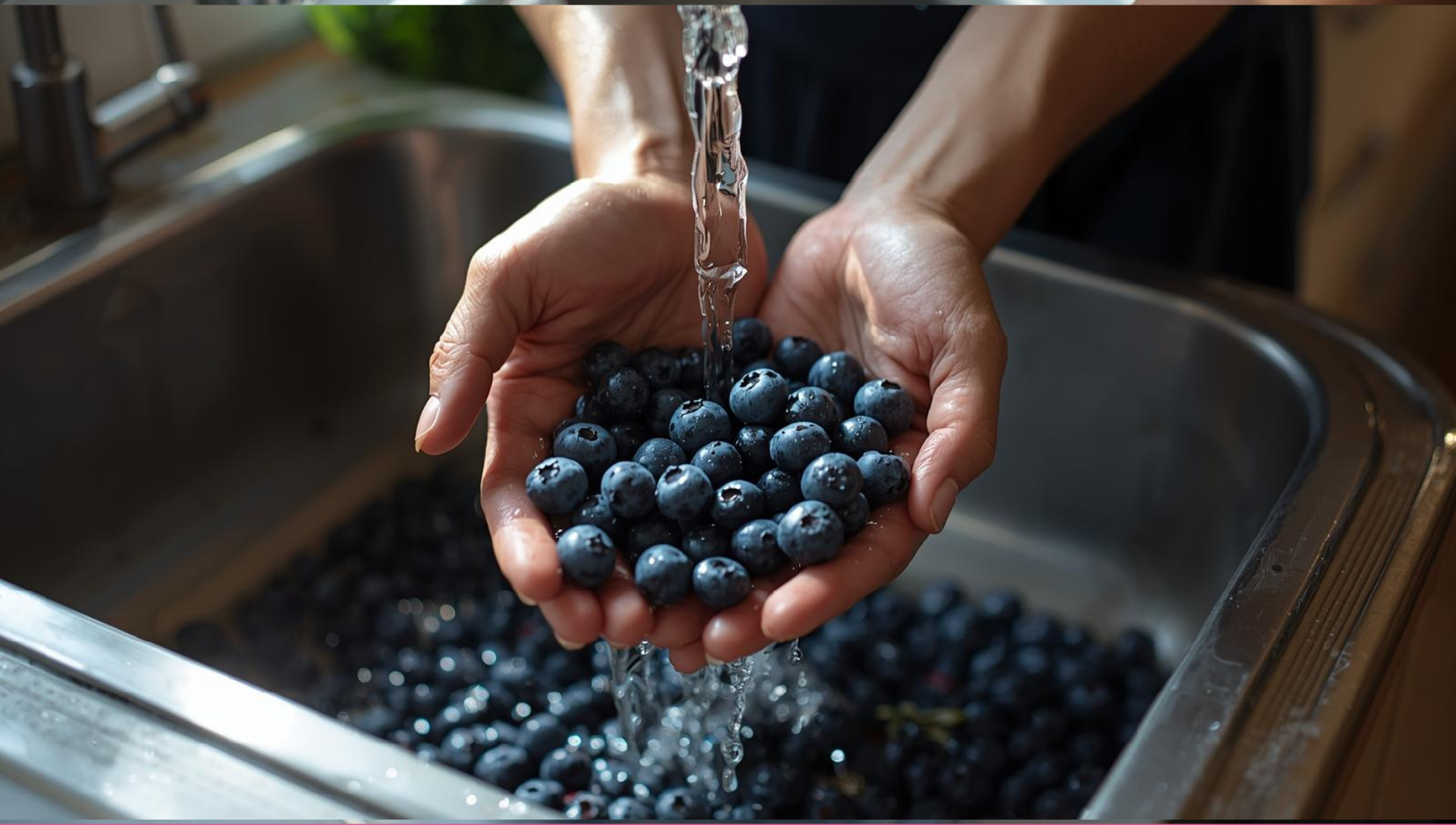 - 流動清水沖洗:將藍莓放入篩網,用清水輕輕沖洗。