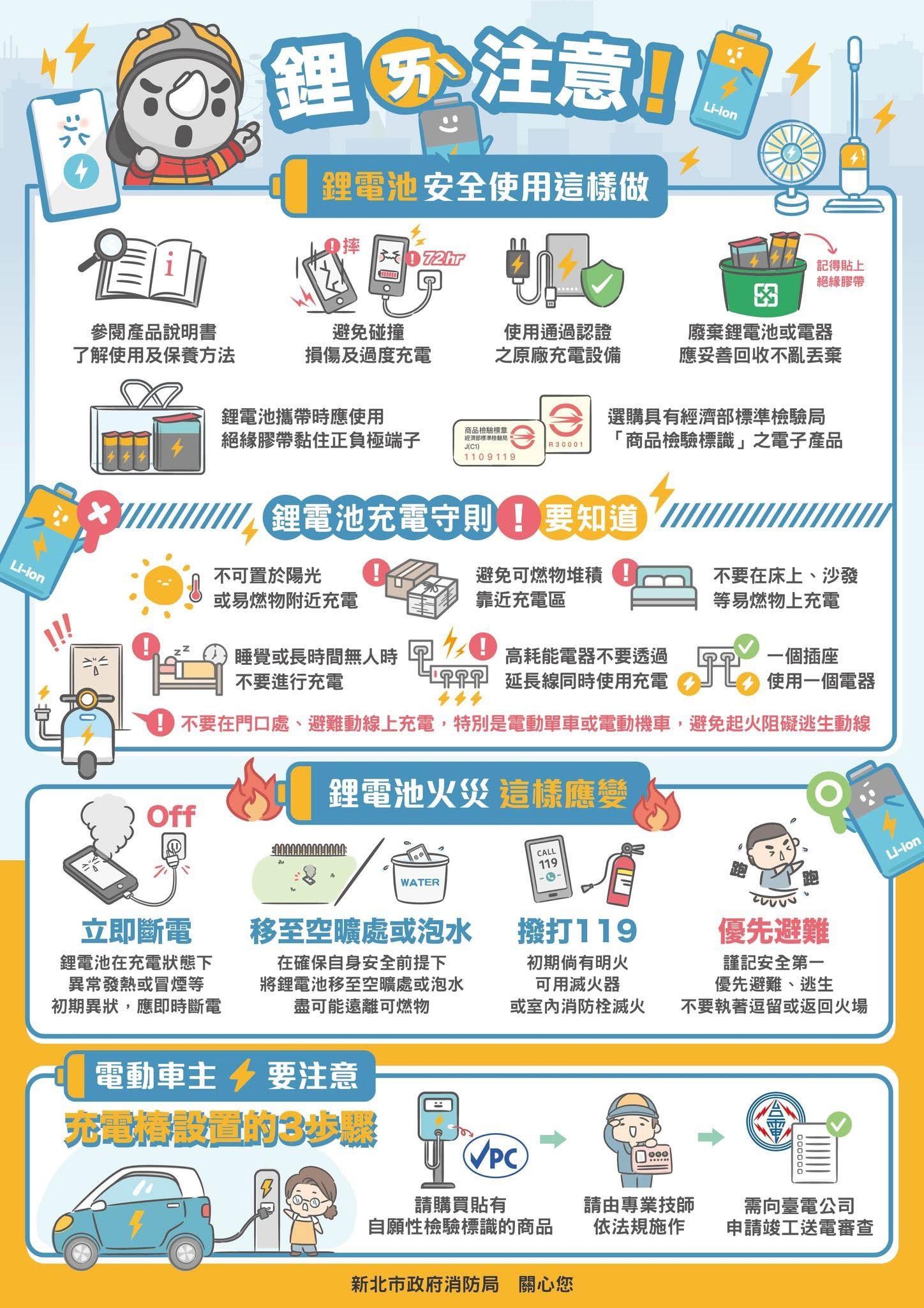 新北市政府消防局曾表示,使用充電器時,應注意以下原則: