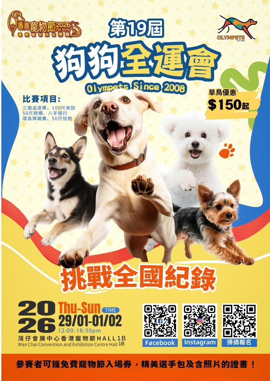 【香港寵物節/2026/展位/免費/入場/螳螂/展覽/獸醫/講座/日期/票價/活動/詳情】被喻為「寵物界工展會」、全港最大型的公眾寵物展覽「香港寵物節2026」,於1月29日至2月1日(周四至日)舉行,展位數量超過1,000個,匯聚全港最多世界知名品牌,讓參觀人士可一站式了解及採購各式寵物商品,包括糧食飼料、飲料、服飾、玩具、美容護理、清潔用品、保健藥物、籠舍等。