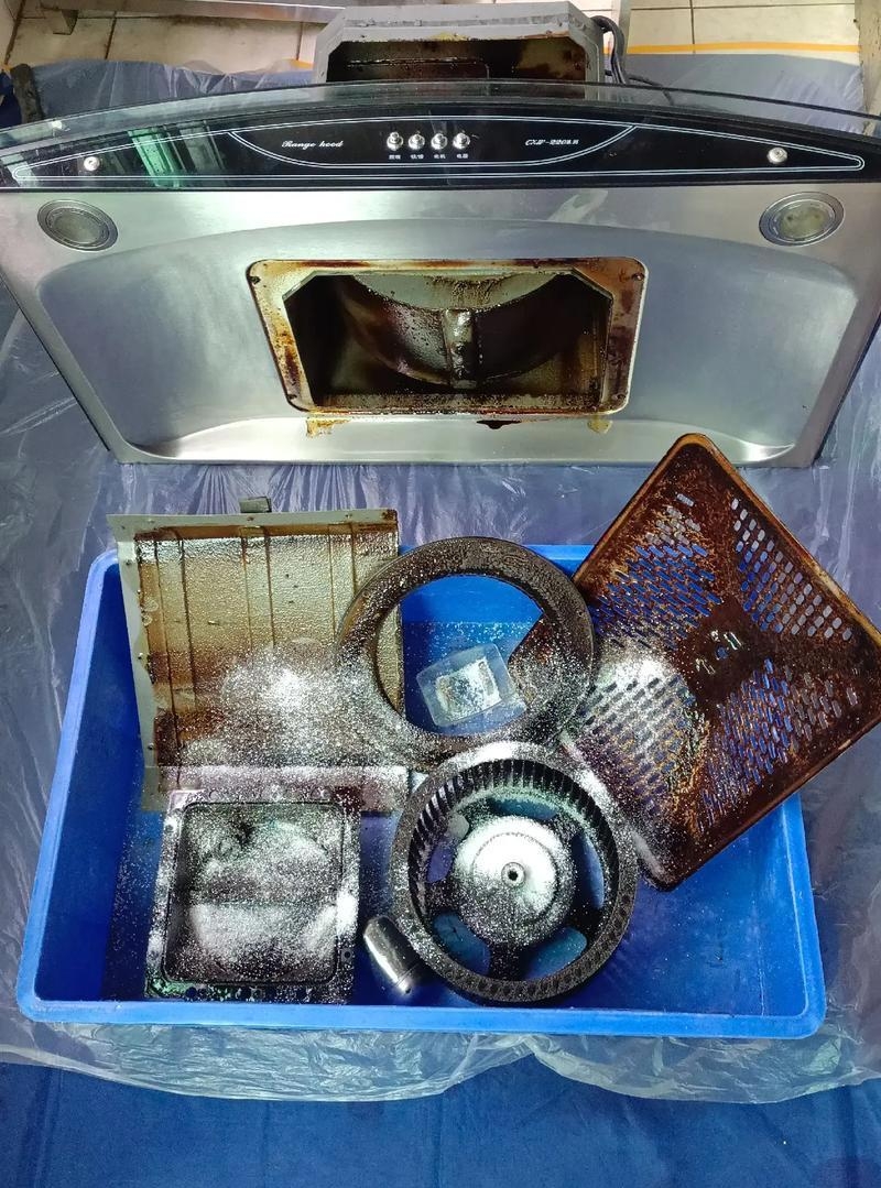 - 浸泡油網配件:將抽油煙機濾網、扇葉等配件放入稀釋溶液中,浸泡15分鐘。期間可輕輕搖動,幫助油漬鬆脫。