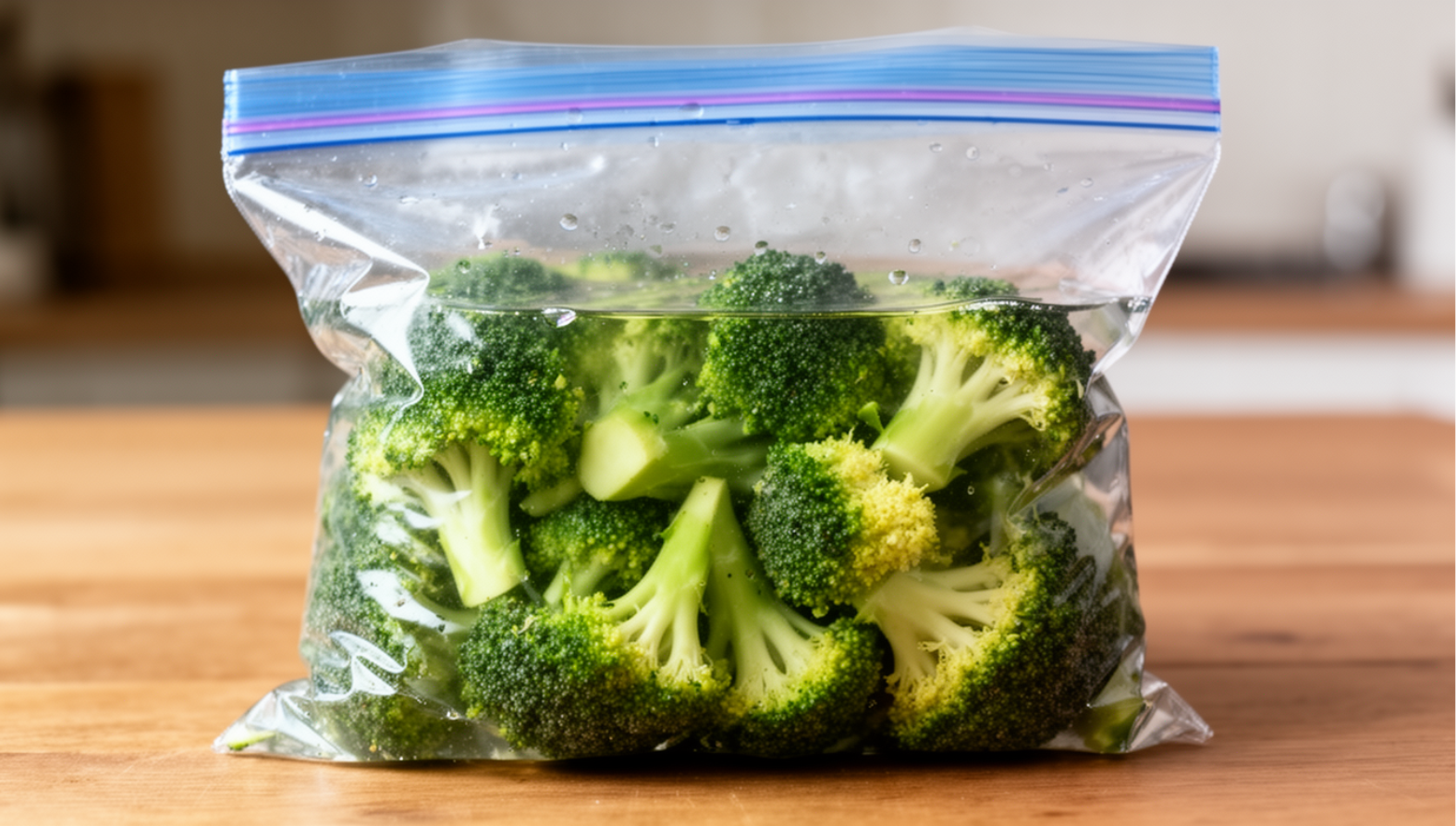 - 將切好的西蘭花小朵放進食品級塑料袋,加大量水。