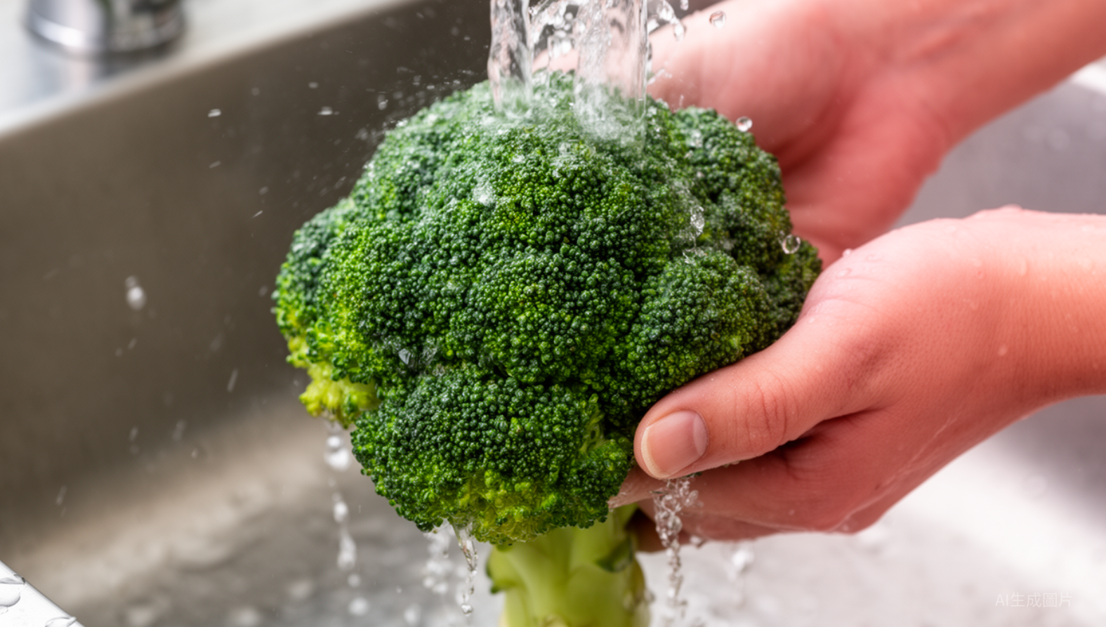 - 原棵放在水龍頭下沖洗:西蘭花表面有防水油層,水只會滑過表面,無法滲入花蕾深處清除蟲子和汙垢。