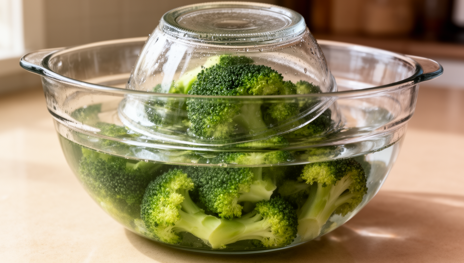 - 原棵浸泡在水盆中:西蘭花內有空氣,會浮起無法完全浸沒,清洗效果差勁,蟲子依然藏身。