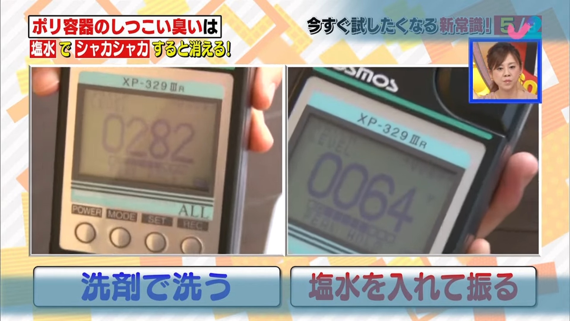 在日本節目《日常生活長知識》(《ソレダメ! ~あなたの常識は非常識!?~》)中,家政顧問矢野菊乃分享了簡單有效的去味方法: