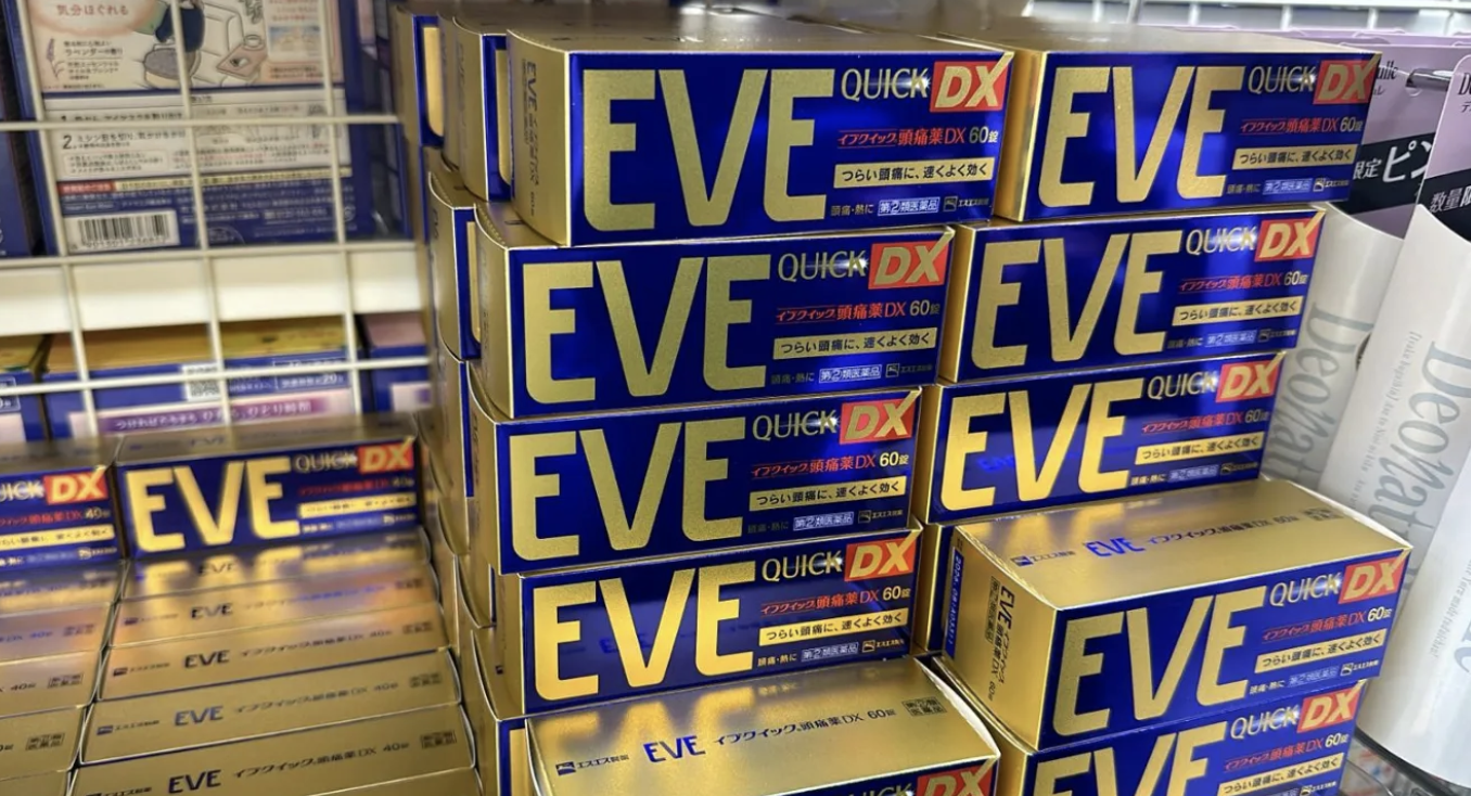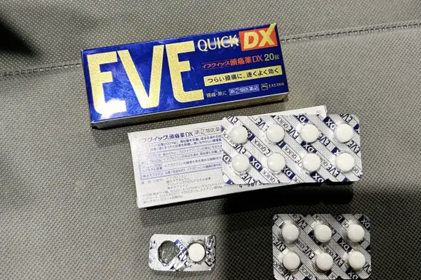 EVE止痛藥在台灣人赴日掃貨時常被列入必買清單,甚至被網民推為「全能止痛藥」,表示對付劇烈頭痛、發燒、牙痛、關節痛、經痛等均有不俗效果,其主成分含非類固醇抗發炎藥(NSAIDs,如布洛芬),短期用於頭痛、經痛或肌肉酸痛效果不錯。但長期或過量服用,會抑制前列腺素、減少腎臟血流,導致急性或慢性腎損傷,甚至不可逆轉的腎衰竭。