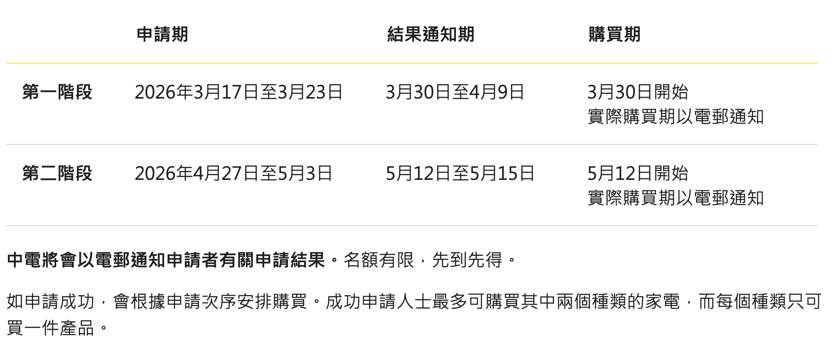 - 第二階段申請期:2026年4月27日上午9時至5月3日晚上11:59