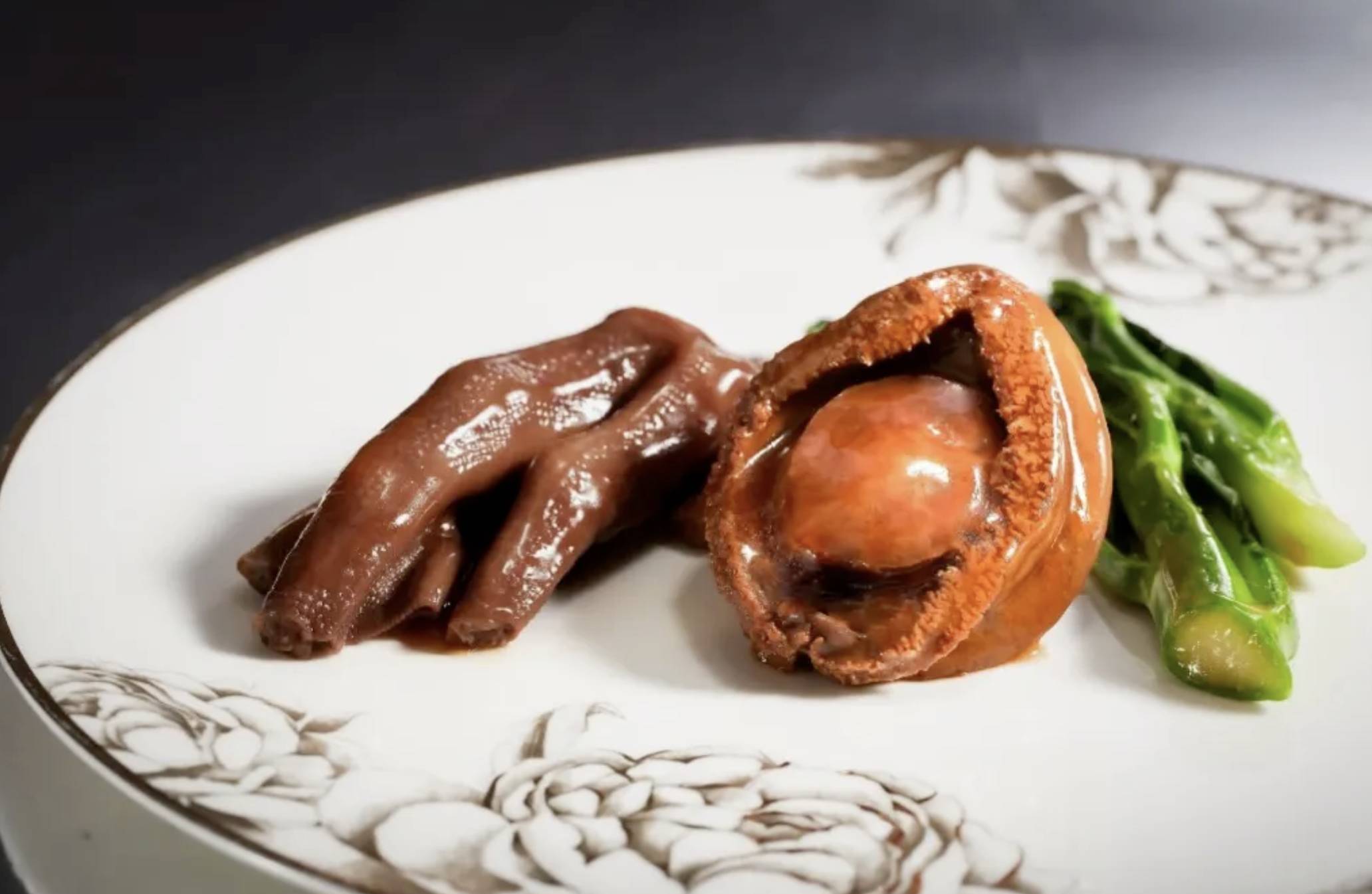 今次的套餐包括:套餐包括:竹笙海皇燴燕窩、叉燒拼燒鵝、原隻 8 頭鮑魚扣鵝掌、翡翠蝦球帶子、金腿炒飯及蛋白杏仁茶,晚市套餐兩位起。