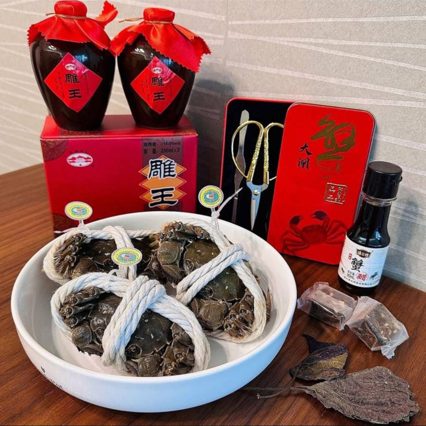 今次的大閘蟹屬精品蟹,一向只供應酒店及會所等高級餐飲場所,比較少在市面上發售,今次推出2 款優惠,其中江蘇太湖精品大閘蟹配國宴級專用的古越龍山雕王最抵,可選 5 至 5.5 両乸蟹或 5.5 至 6 両公蟹,價錢分別是 $99 及 $109。