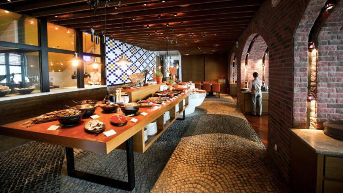 晚市自助餐陣容更豐富,有:南瓜醬醃洋蔥核桃提子包、酥炸鱈魚、非洲雞串、鹹鱈魚雞心豆多士、蕃茄辣椒汁炆雞腎、燒乳豬伴黑椒汁、蒜香燒鹹鱈魚配新薯、葡式焗鴨飯、煙燻甜紅椒炆雞、薯茸炆黑毛豬頰肉、朱古力梳乎厘、蘋果醬鮮奶甜飯、朱古力薑蛋糕、葡式蛋撻、焗蛋黃杏仁糖漿及西班牙油條等。