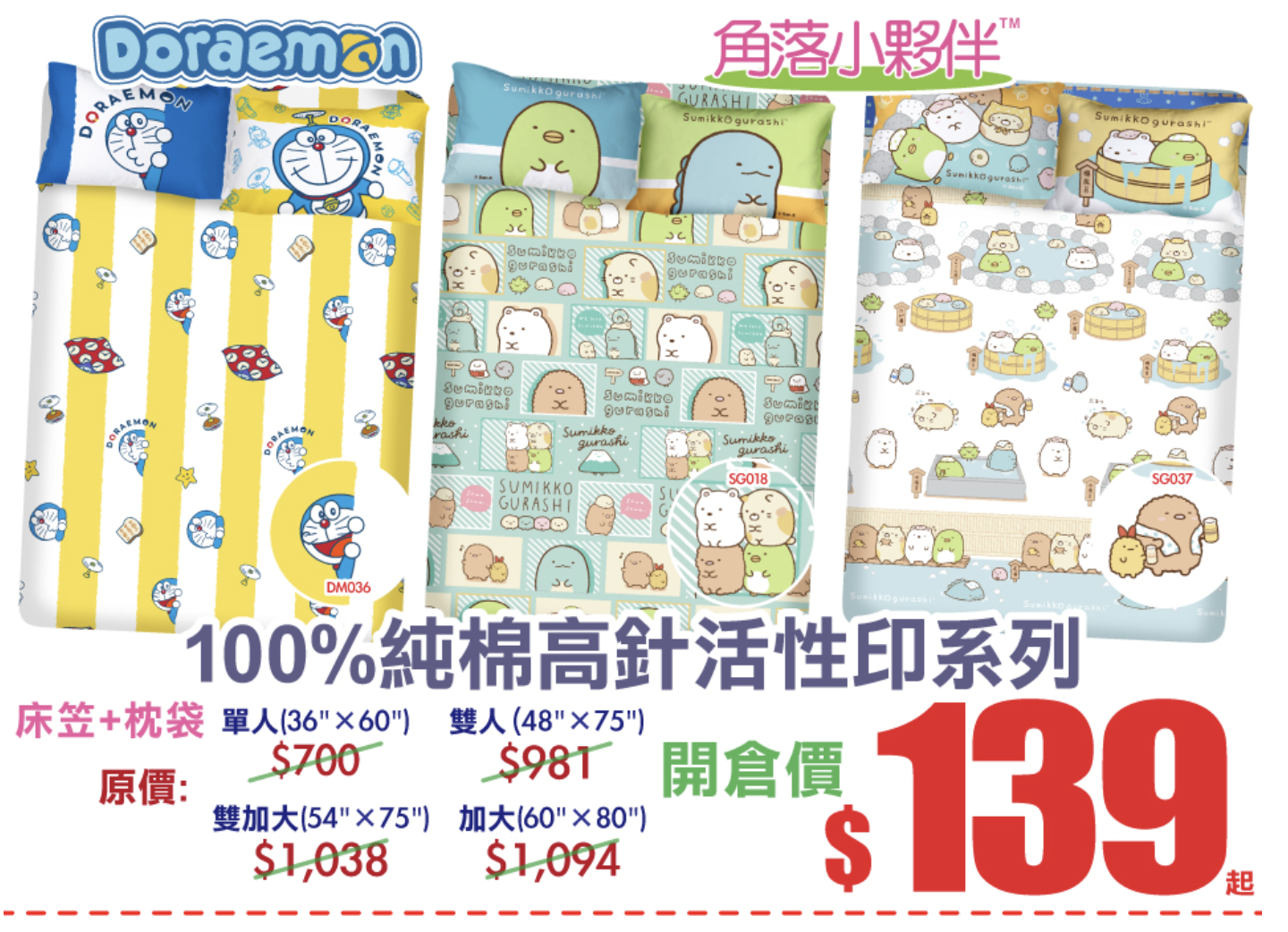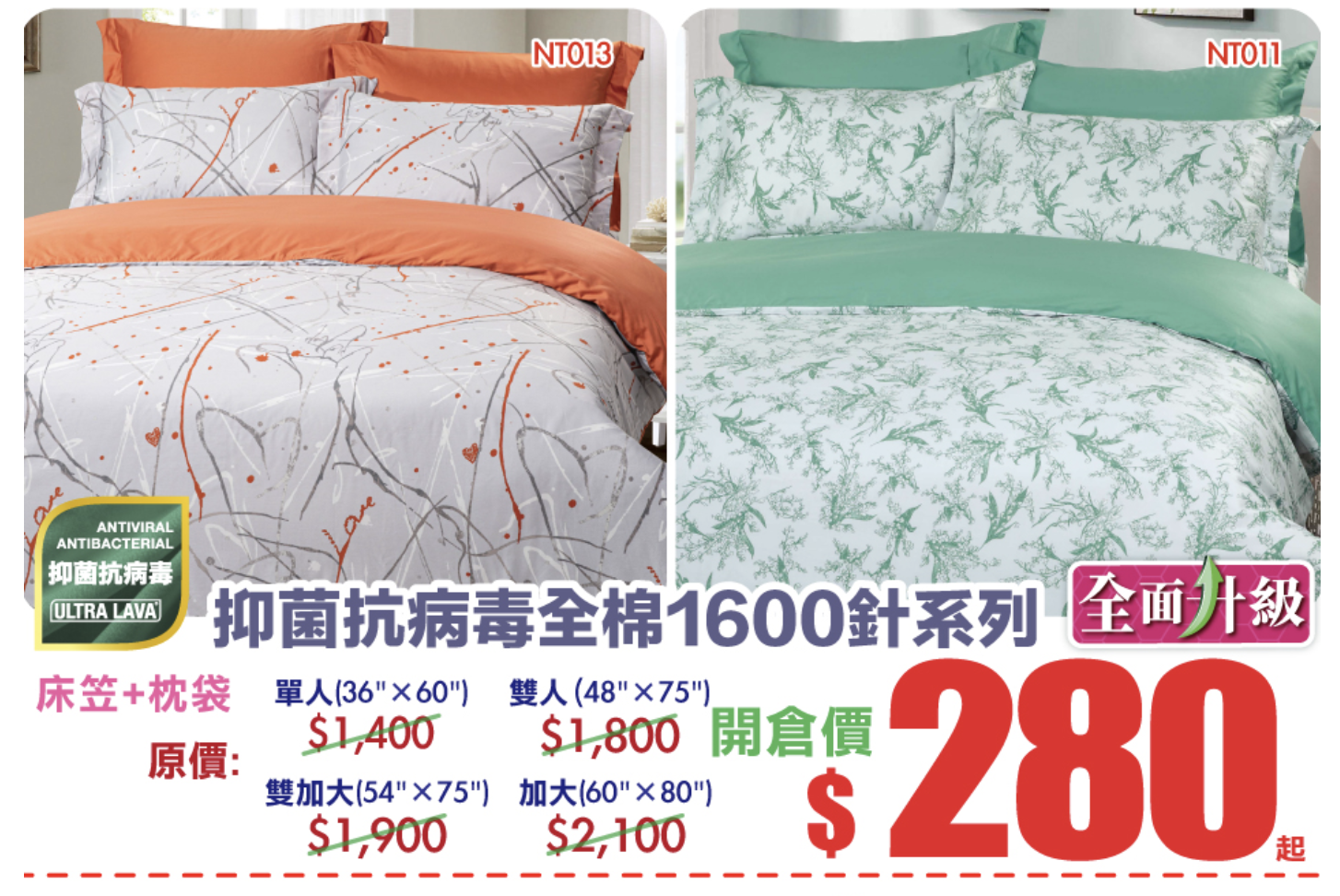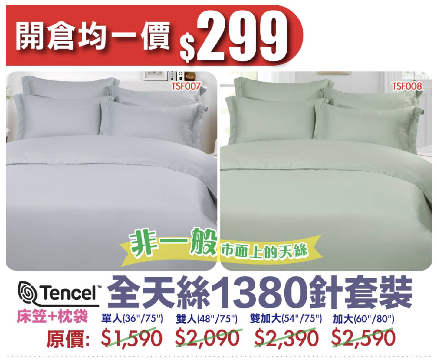 仲有兩星期左右就過年,都會置下家品、寢室用品過新年,咁就啱啦,床具品牌 Cherry 搬遷清貨,1 月 3 日至 13 日會在土瓜灣開倉,唔少產品都劈價清倉,好似平日買 $499-729 的床笠連枕袋,激減至 $89 起,記憶枕更係大激減,由 $1699 減至 $169,而且有多款不同類型選擇。近排天氣經常轉冷,反厚被當然少不了,高級大豆蠶絲被、100%澳洲純羊毛被、80% 波蘭羽絨被、抗菌絨厚毯、90%瑞士抗菌專利白鵝羽絨被低至 $299 起發售。