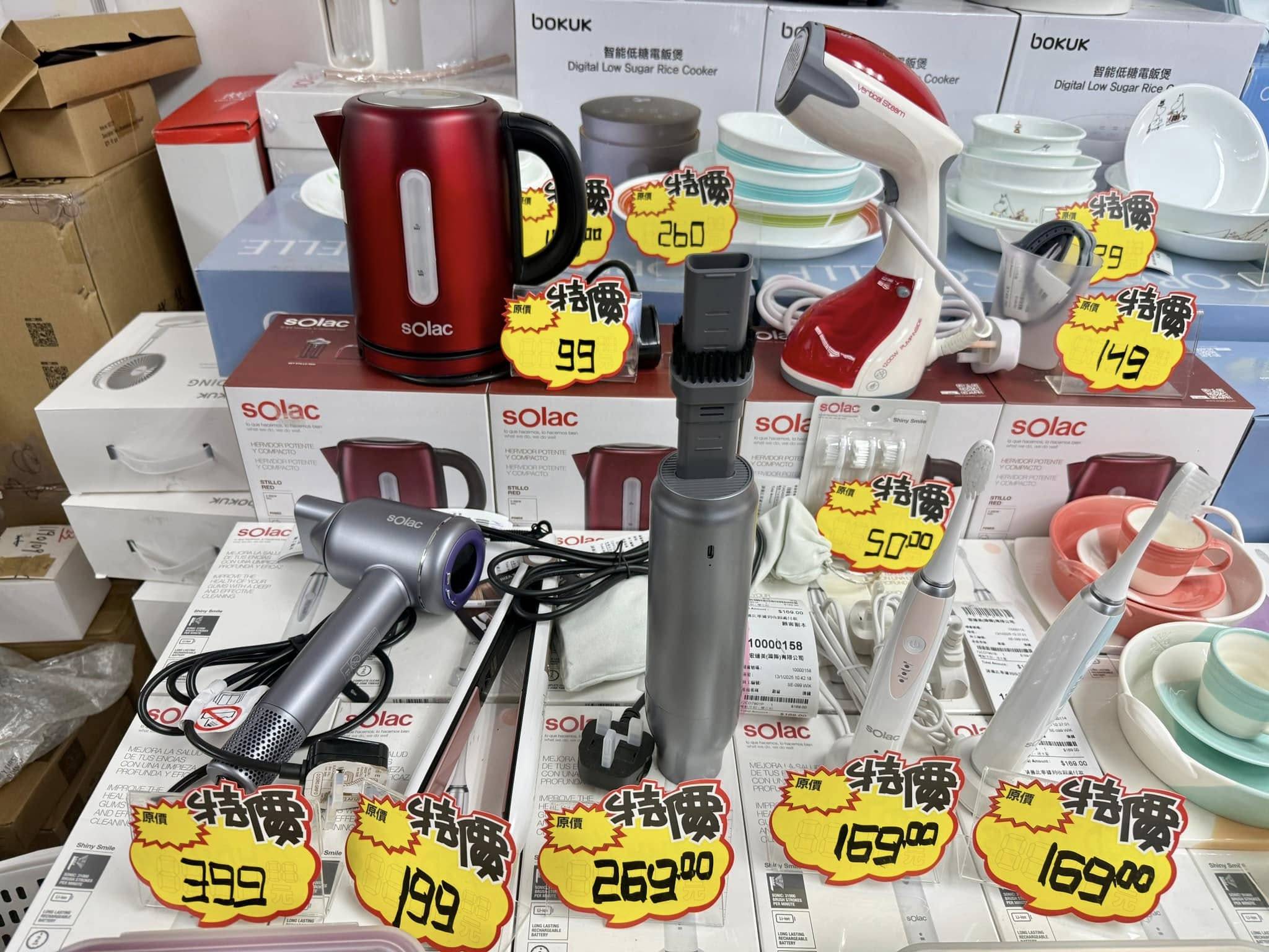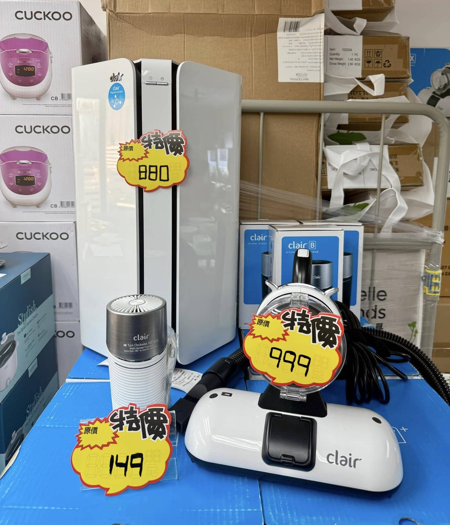 今次開倉遇有不少小家電賣,例韓國 Clair 除塵蟎吸塵機及多款空氣清新機;Solac 電熱水煲、手提蒸氣熨斗、電動牙刷、風筒;CUCKOO 電飯煲、Bokuk 智能低糖電飯煲、TouchBeauty 臉部按摩器、電動洗臉刷等。開倉期間購物滿 $480 即送「熊貓廚神家族」公仔一隻。
