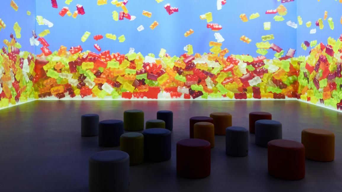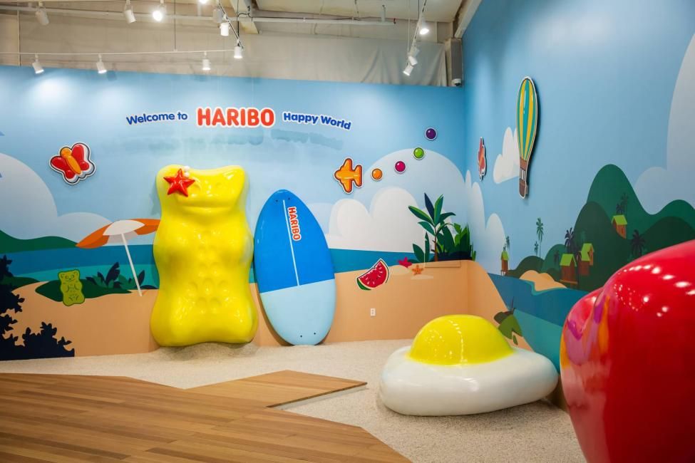 今次的展覽遊客可以體 驗全息投影和 AR 遊戲互動,與巨型軟糖、彩虹小熊等多個打卡點合照。另有多媒體展廳,展示哈瑞寶軟糖的誕生故事,並讓大家在「軟糖島」體驗軟糖製作過程,更有互動小遊戲,大人或小朋友也啱玩。