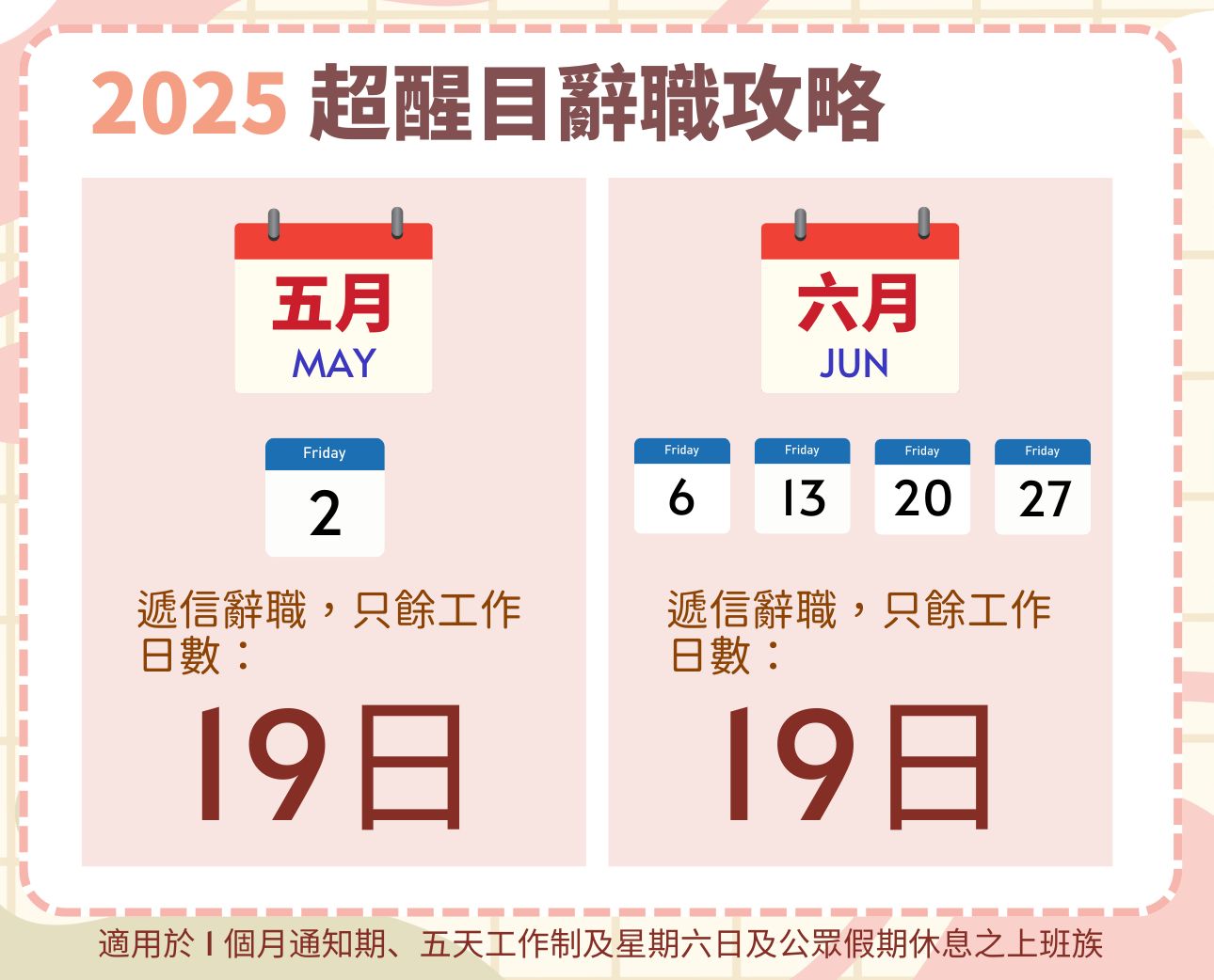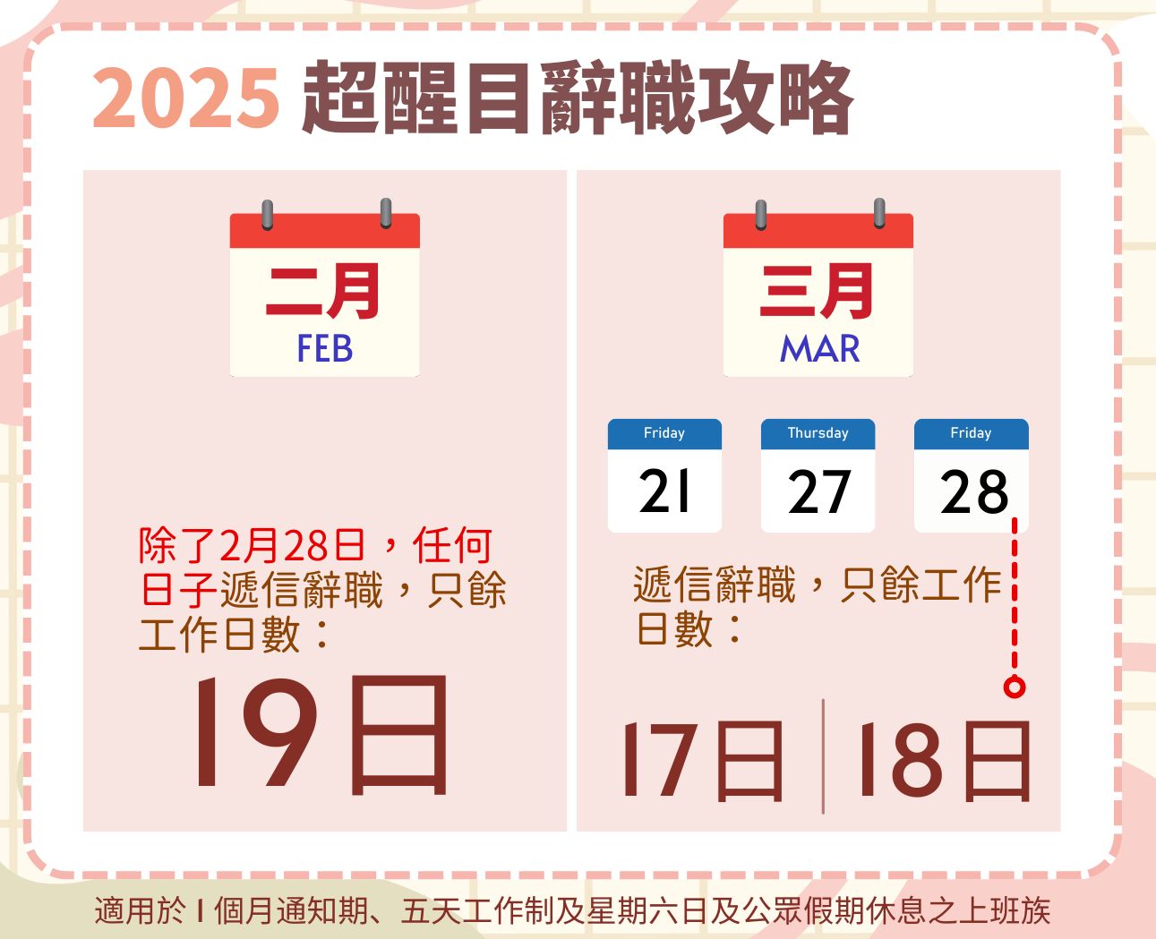 年尾新年拎花紅,不少打工仔會選擇在年頭轉工,另一批則會選擇在財政年度發放花紅後,辭職點可以蝕畀公司!要用精算般的頭腦揀出最醒目的遞信辭職日,本文有2025年辭職攻略,今年有5個最著數辭職月份,當中更有一天是全年最筍的「年度大辭職日」,選擇在這天遞信,只需工作日16日。