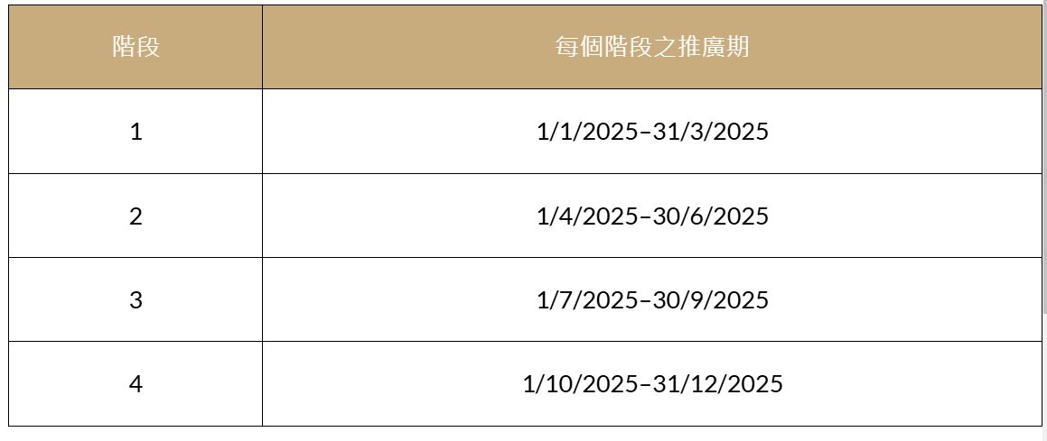 由2025年2月14日至3月31日(包括首尾2天),合資格Alipay HK用戶或Alipay + Partner Wallets用戶可掃碼進入指定頁面領取現金券,並於參與之餐飲/美妝及其他商戶付款淨值滿指定金額,有機會可享立減高達HK$888獎賞。