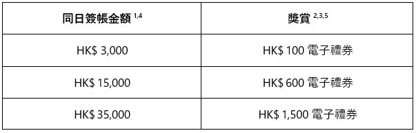 - 電子現金禮券獎賞換領:交易日起計7日内於商場賓客服務台換領