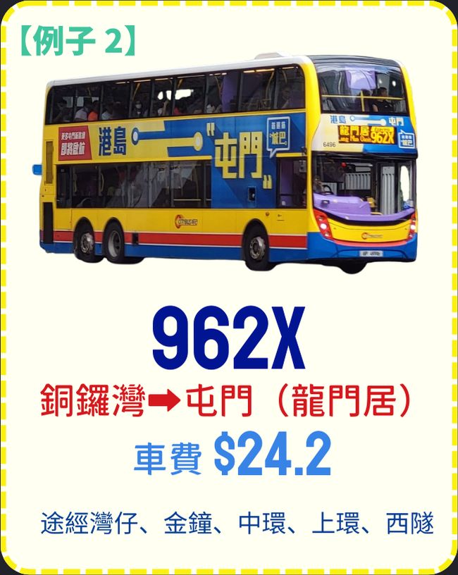 【例子 2️⃣】首程 962X 號巴士 ➡️ 免費轉乘 ➡️ 次程 B3X 號巴士