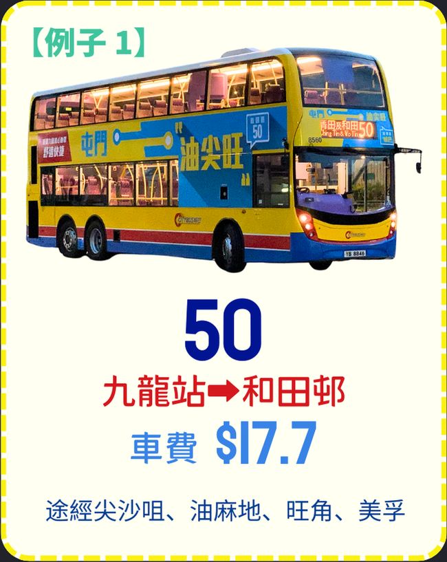 【例子 1️⃣】首程 50 號巴士 ➡️ 免費轉乘 ➡️ 次程 B3X 號巴士