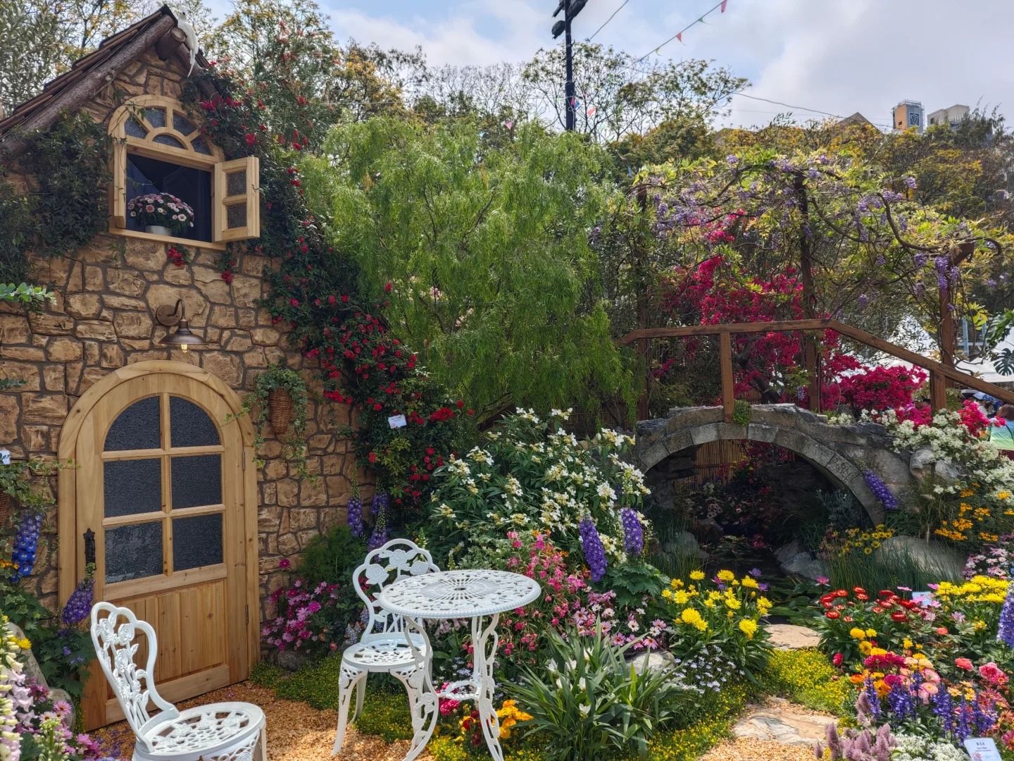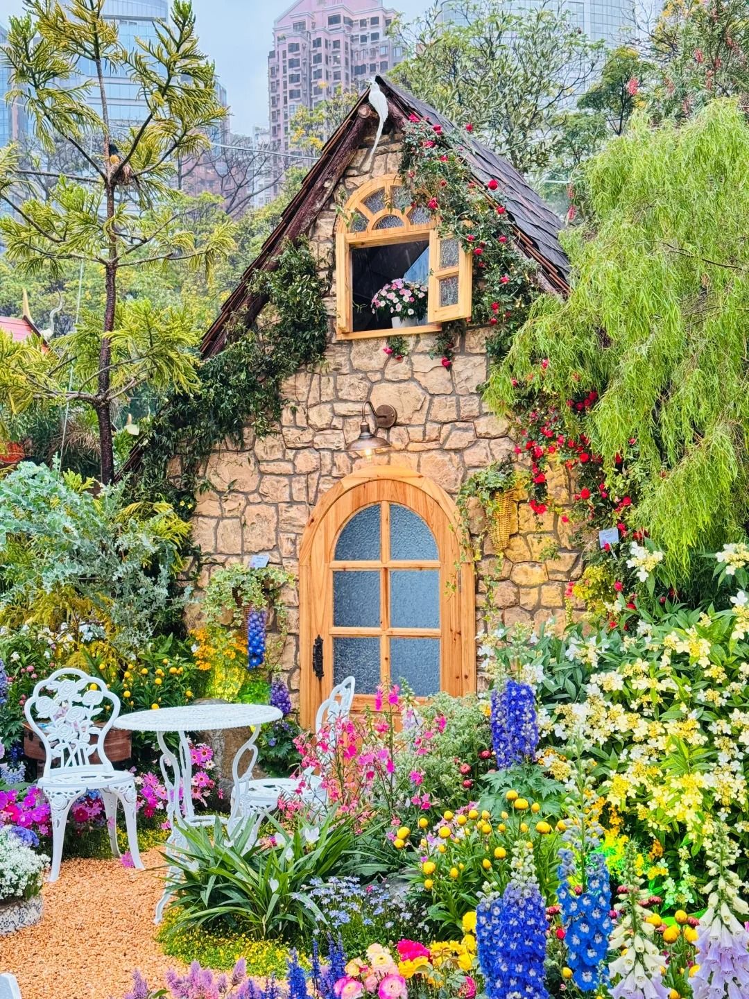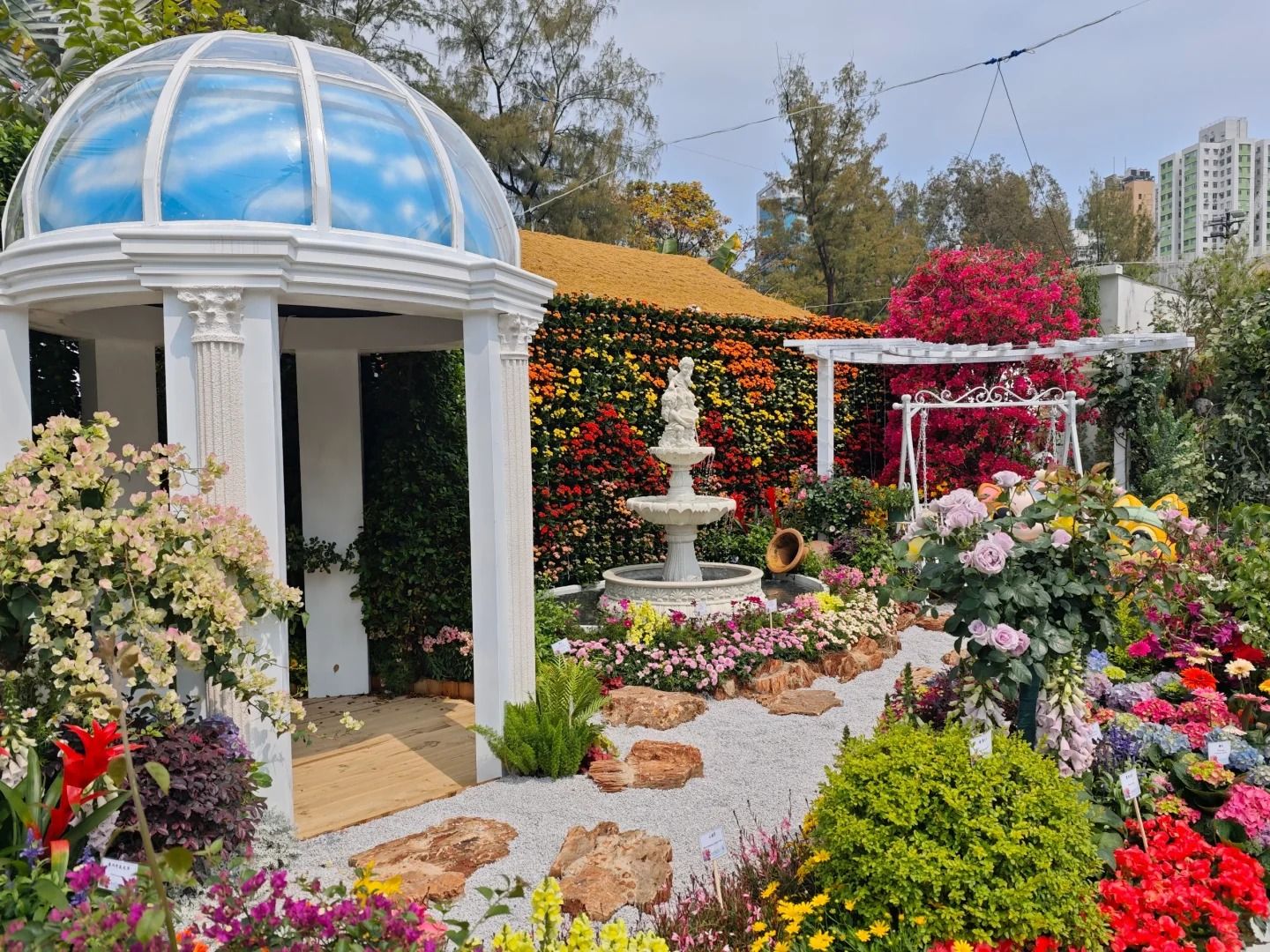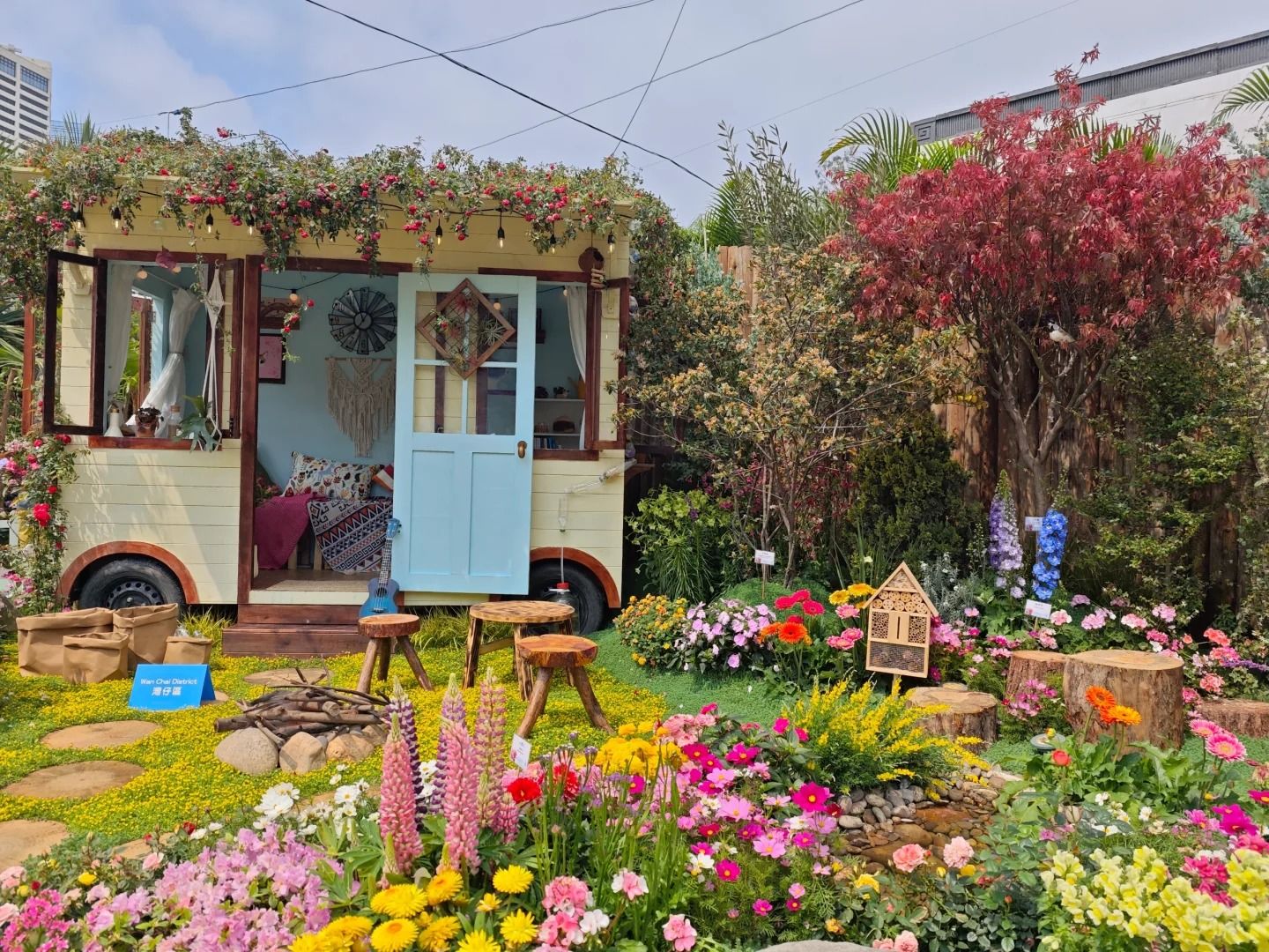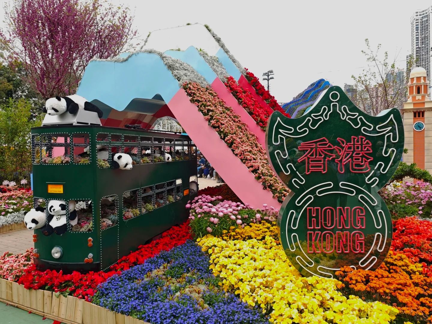 場內也有不少以香港為主題的花藝展品,如花海熊貓電車、尖沙咀鐘樓等。