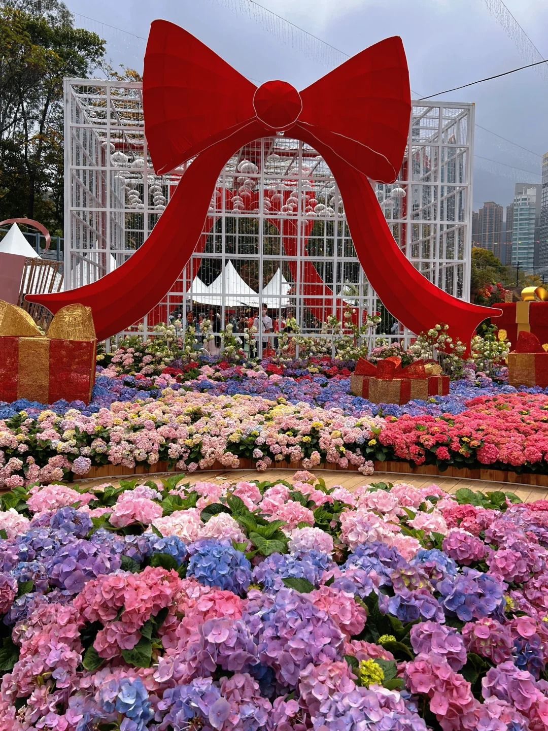 這區名為「大自然的禮物」,認住大型禮物裝置就搵到,這區有一片粉色繡球花田,另外還有顏色鮮艷的鬱金香花田。