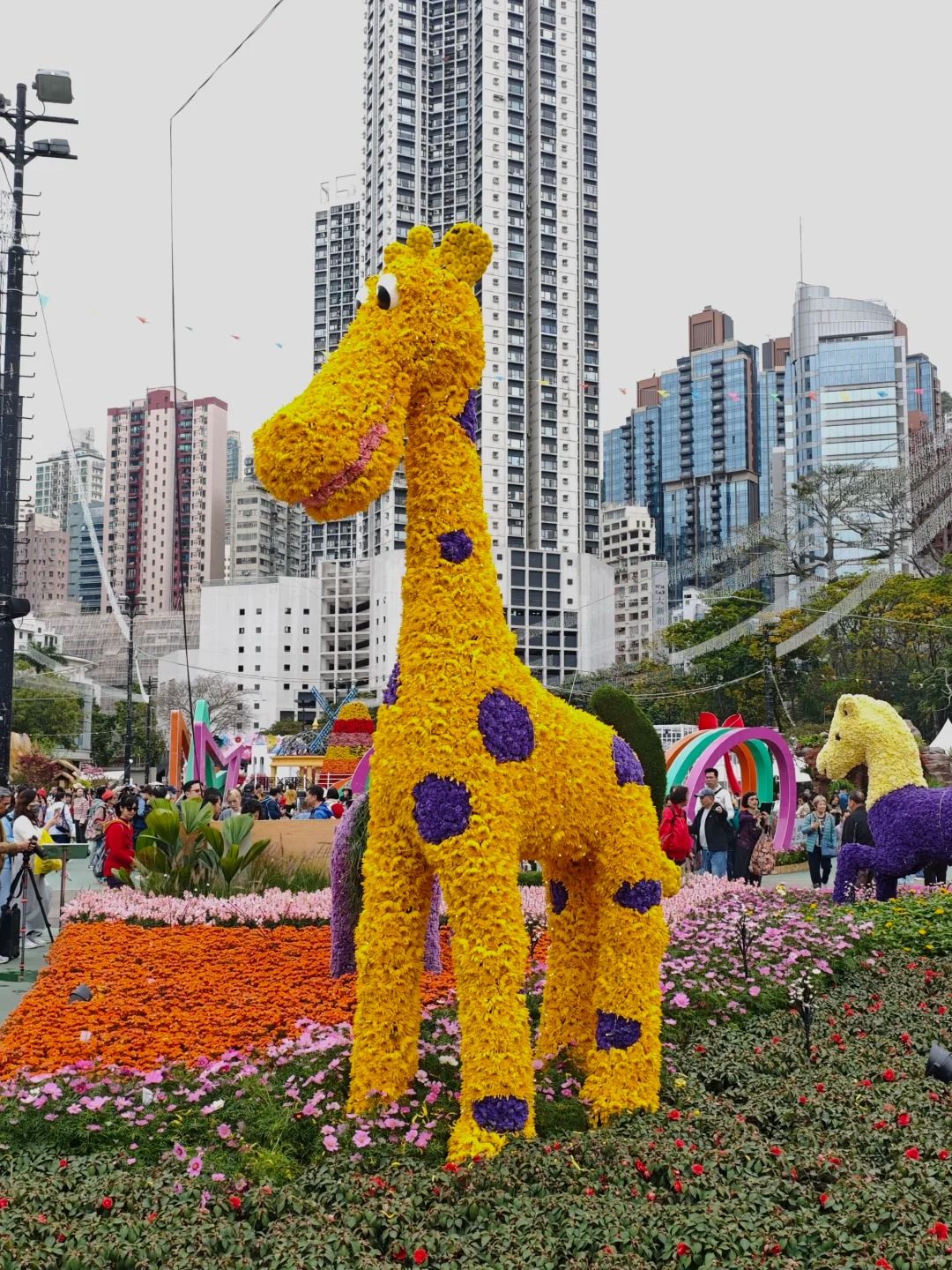 非洲野生動物花壇有大型的動物花藝展品,如長頸鹿、馬等。