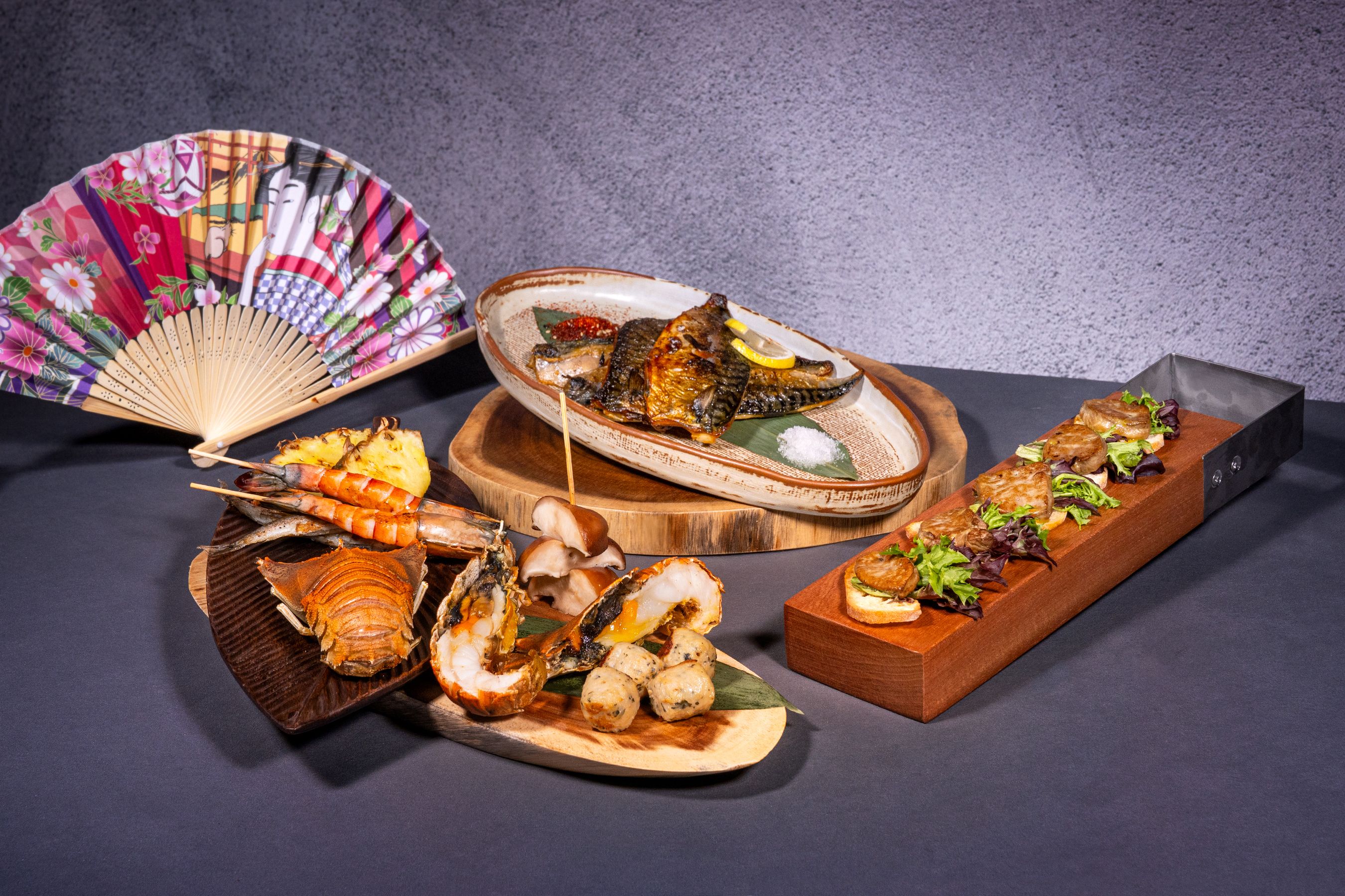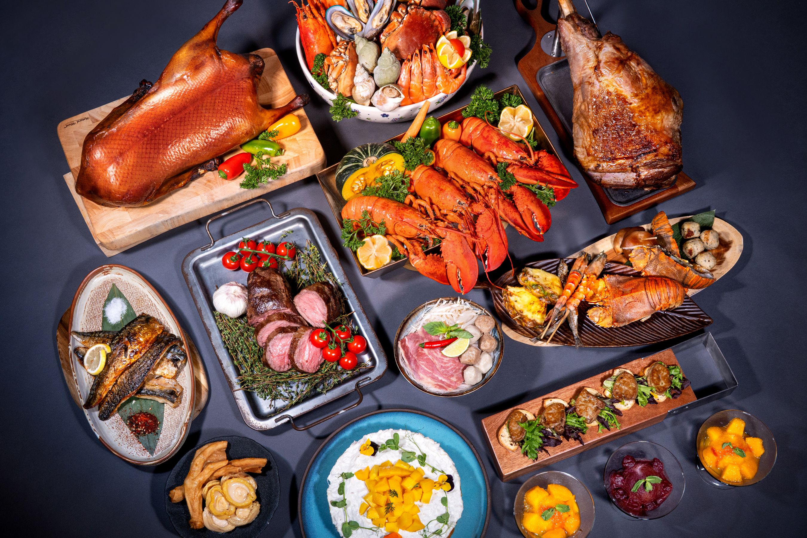 4 小時華麗盛宴自助晚餐亮點推介:堂弄原隻鮑魚鴨掌(每位一客)、芝士蘑菇焗蟹蓋、片皮鵝和原件鴨肝;冰鎮海鮮區有波士頓龍蝦、加拿大雪花蟹腳、麵包蟹、翡翠螺、青口及熟蝦;爐端燒必吃現場烹調原件鴨肝、琵琶蝦等。還有龍蝦蟹肉湯、花膠瑤柱羹湯汁濃郁、多款熱葷、壽司刺身、泰式船麵、自家製片皮鵝等。