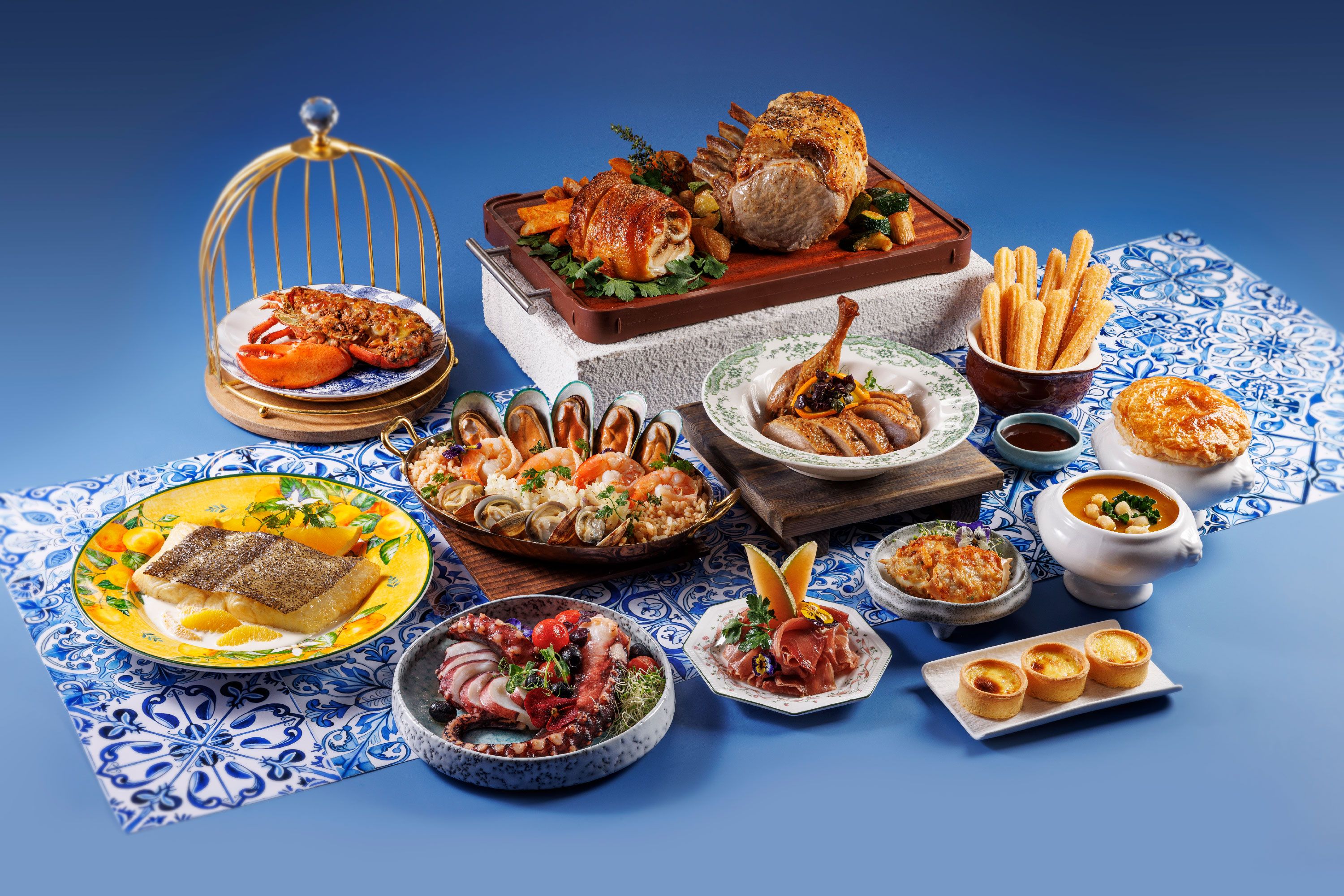 「西饌葡味」 海鮮自助晚餐,以西班牙及葡萄牙兩國的經典美味為主題,推介美食:西班牙火腿配蜜瓜、葡式甘藍帶子酥皮湯、西班牙燒豬鞍、葡式燒乳豬、葡式烤八爪魚鬚、葡式釀蟹蓋、葡式香橙鴨脾、西班牙海鮮焗飯、半熟芝士葡撻、吉拿棒、無限供應果汁、汽水啤酒。