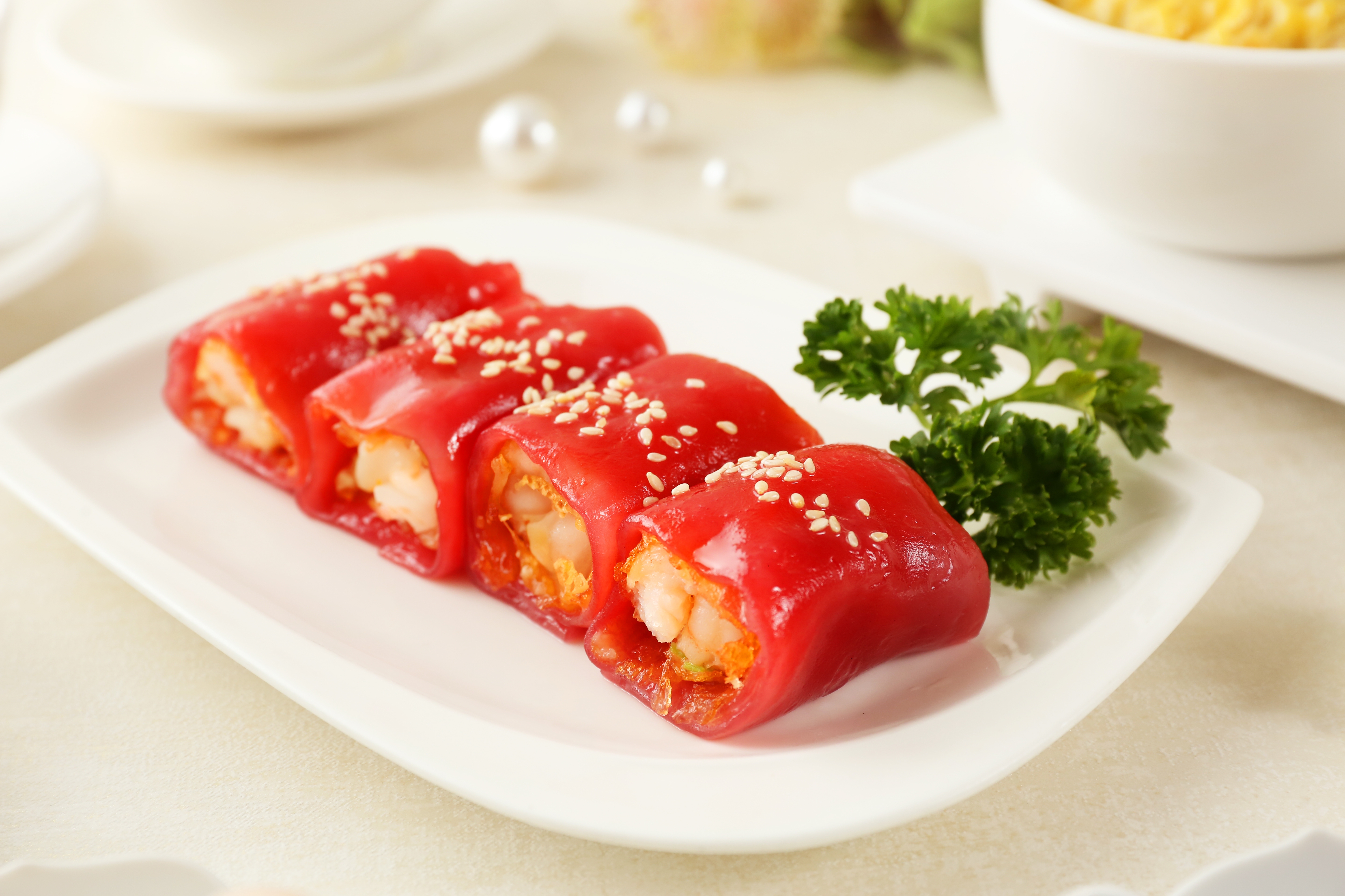 香滑馬蹄牛肉腸粉、軟滑布拉腸粉、午爐叉燒腸粉、鮮蝦脆皮紅米腸