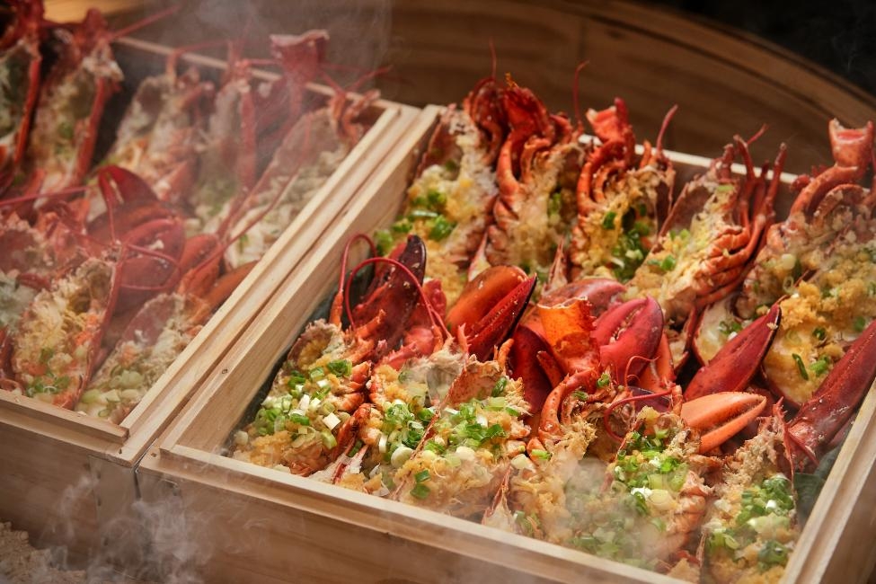 自助晚餐嘅海鮮更加豐富,主題「海鮮美食坊」可以食到龍蝦、鮑魚、蜆、海螺、蝦、琵琶蝦、花蟹、三點蟹、麵包蟹、清蒸龍蝦、蒜蓉粉絲帶子等,而10月嘅「蟹逅金秋」仲有得食四両清蒸大閘蟹一隻,有麵包蟹、本地新鮮藍蟹及三點蟹,真係蟹蟹蟹!