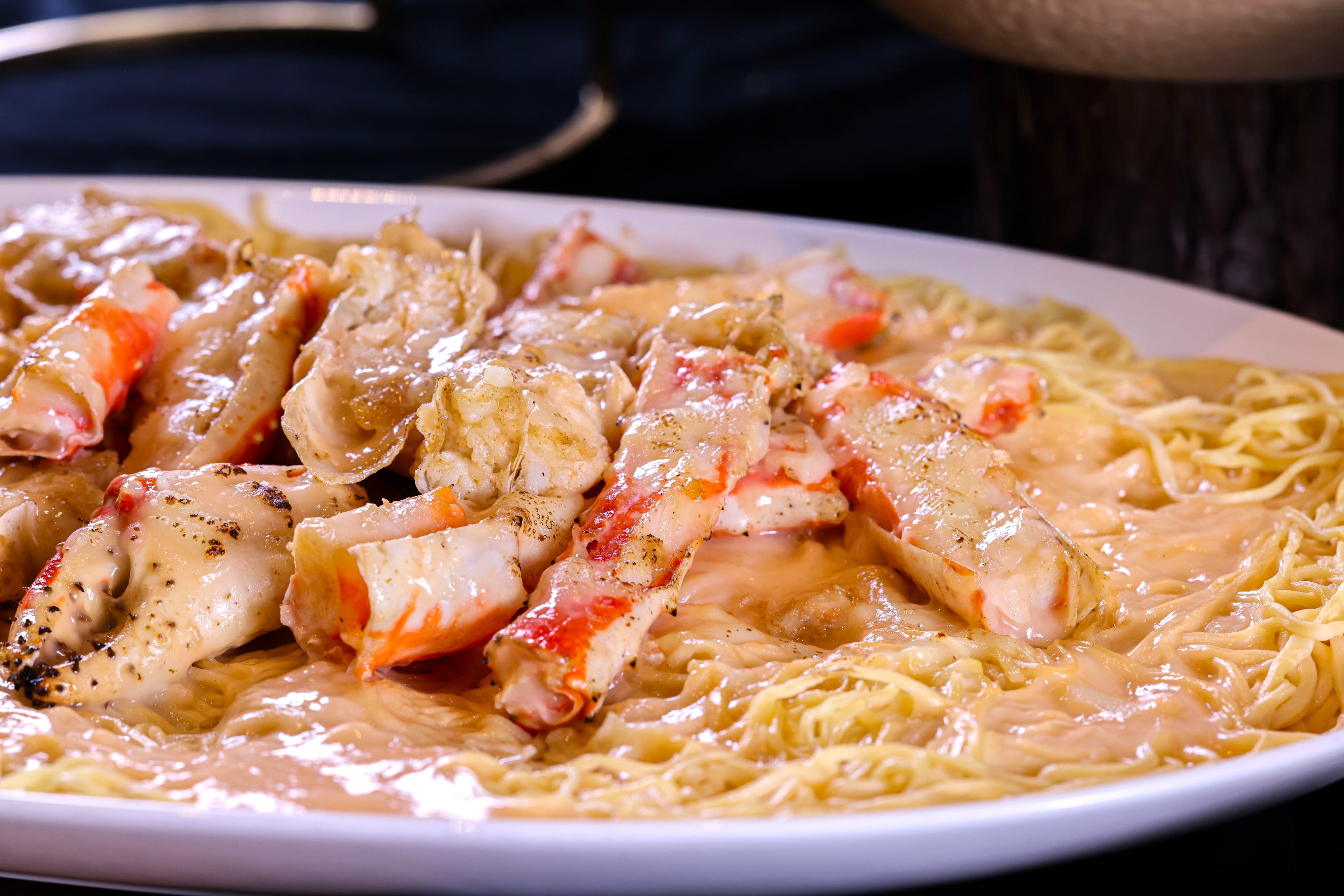今次優惠涵蓋自助午餐同晚餐,先同大家分享價錢最平嘅自助午餐,亦係小編覺得性價比最高嘅一款。自助午餐食到由日本直送阿拉斯加帝王蟹烹調而成嘅阿拉斯加蟹芝士炆伊麵、清蒸生蠔、香草牛油燒大蝦等,以上3款係午餐限定菜式。當然,一般自助餐會有嘅菜式,例如冰鎮海鮮都會有,但論回本能力,大家集中火力主攻食蟹最ok。