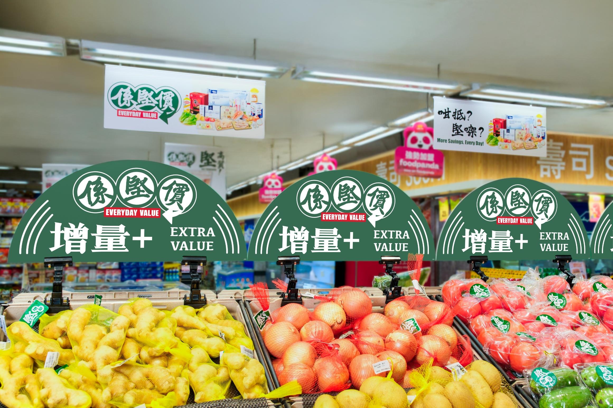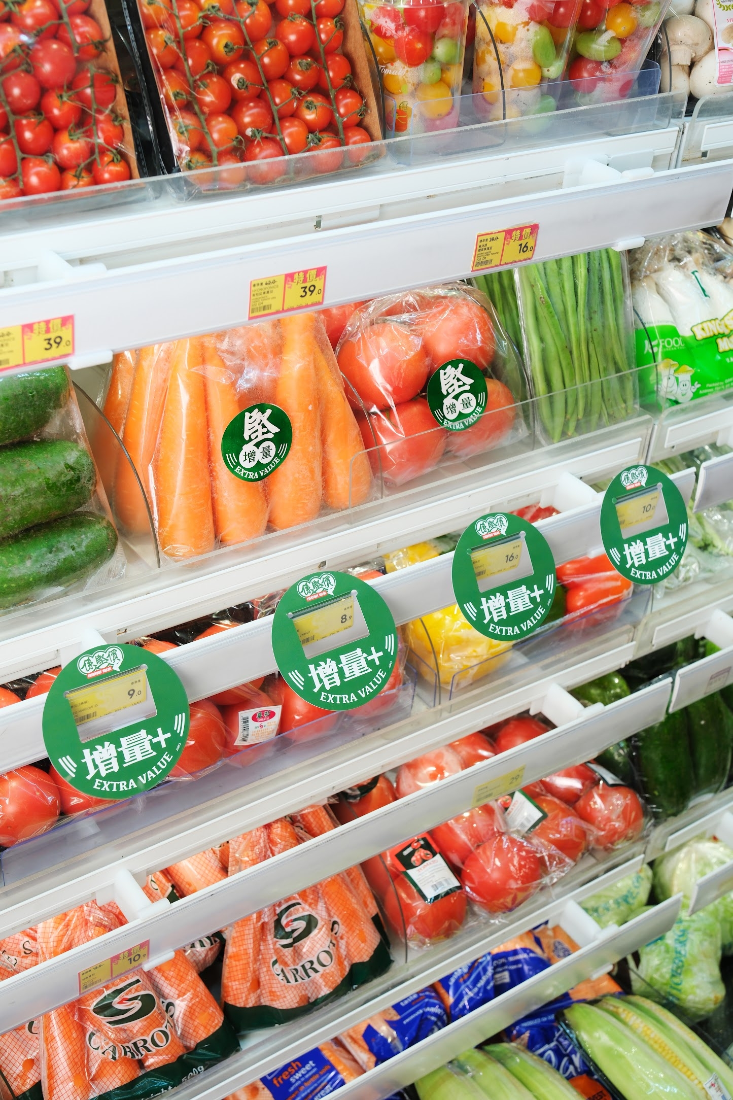 🔵 讓消費者以相同或更低價錢購買更多份量的產品,例如薯仔、蕃茄、洋蔥、蒜頭、薑等均有增量。