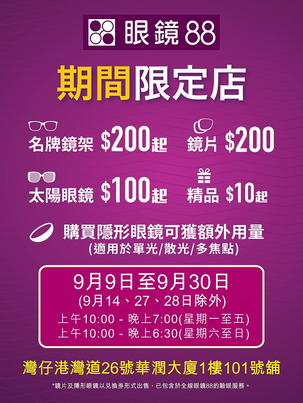 眼鏡88 灣仔期間限定店詳情