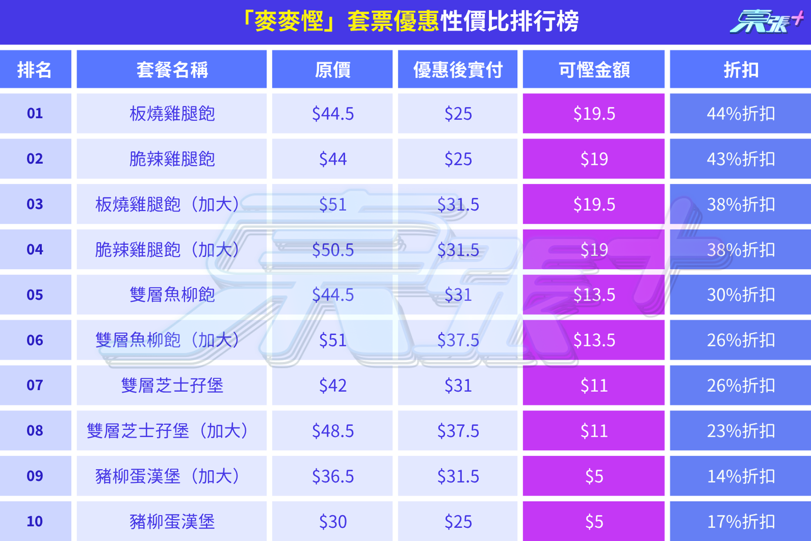 「麥麥慳」套票優惠性價比排行榜