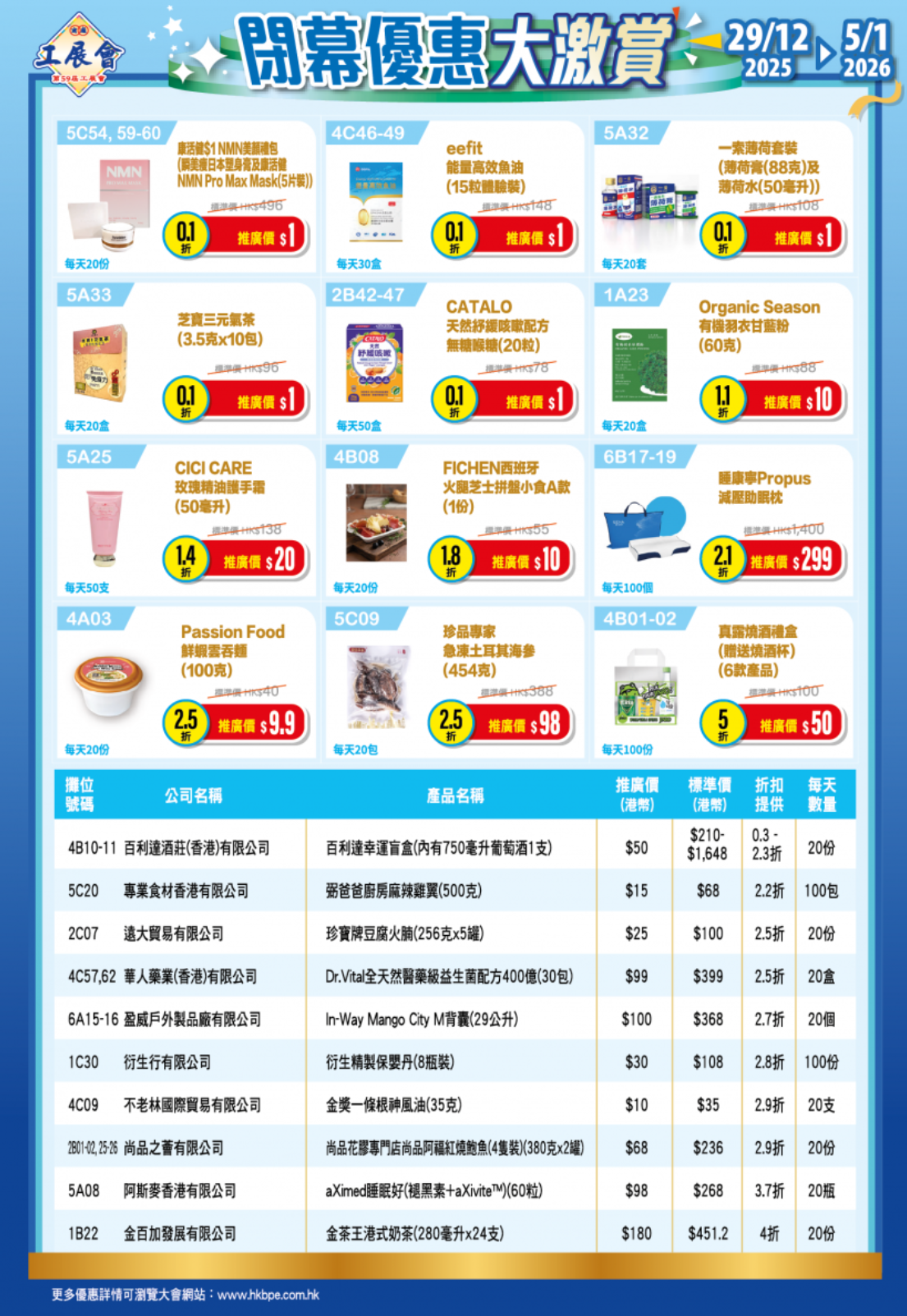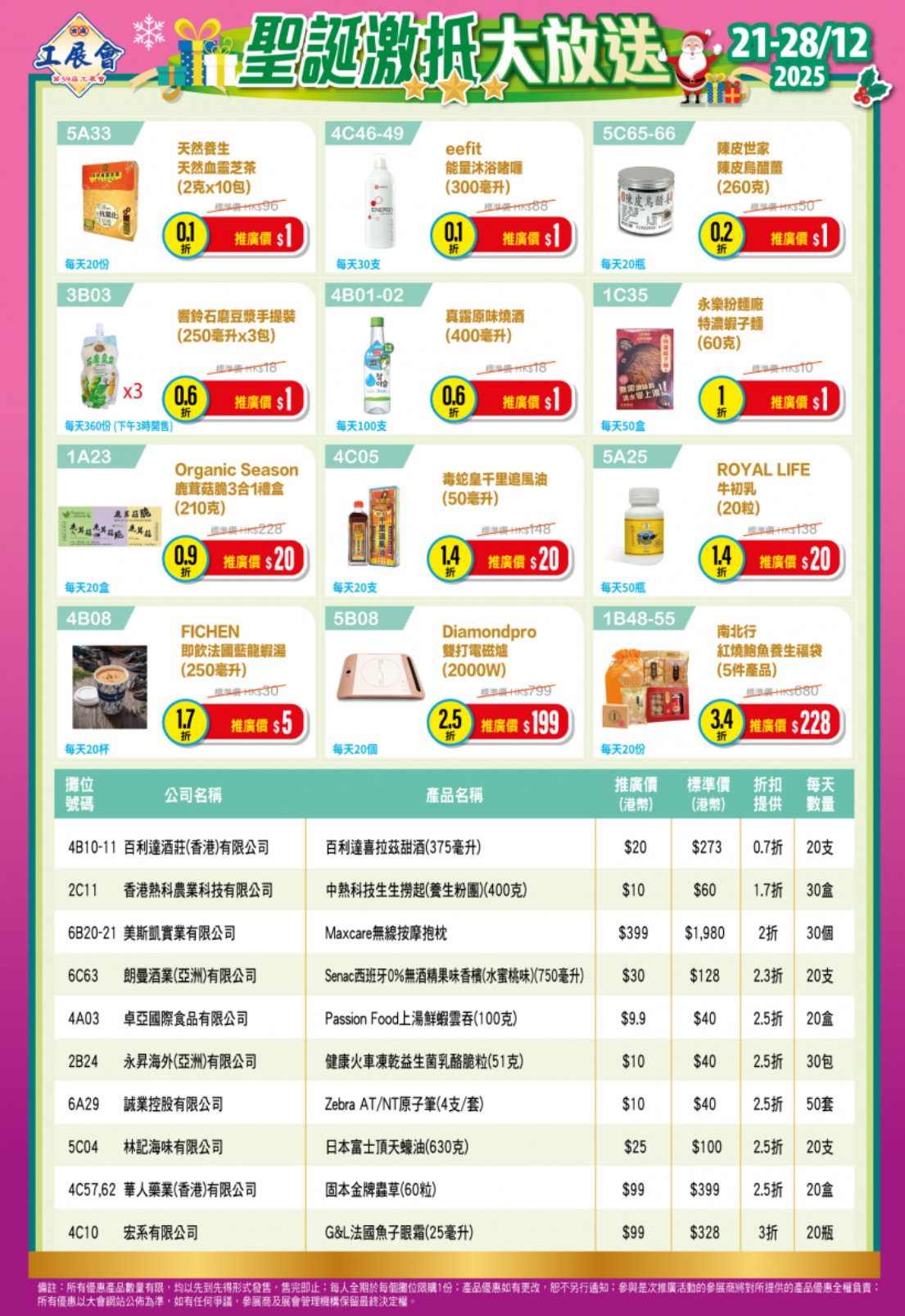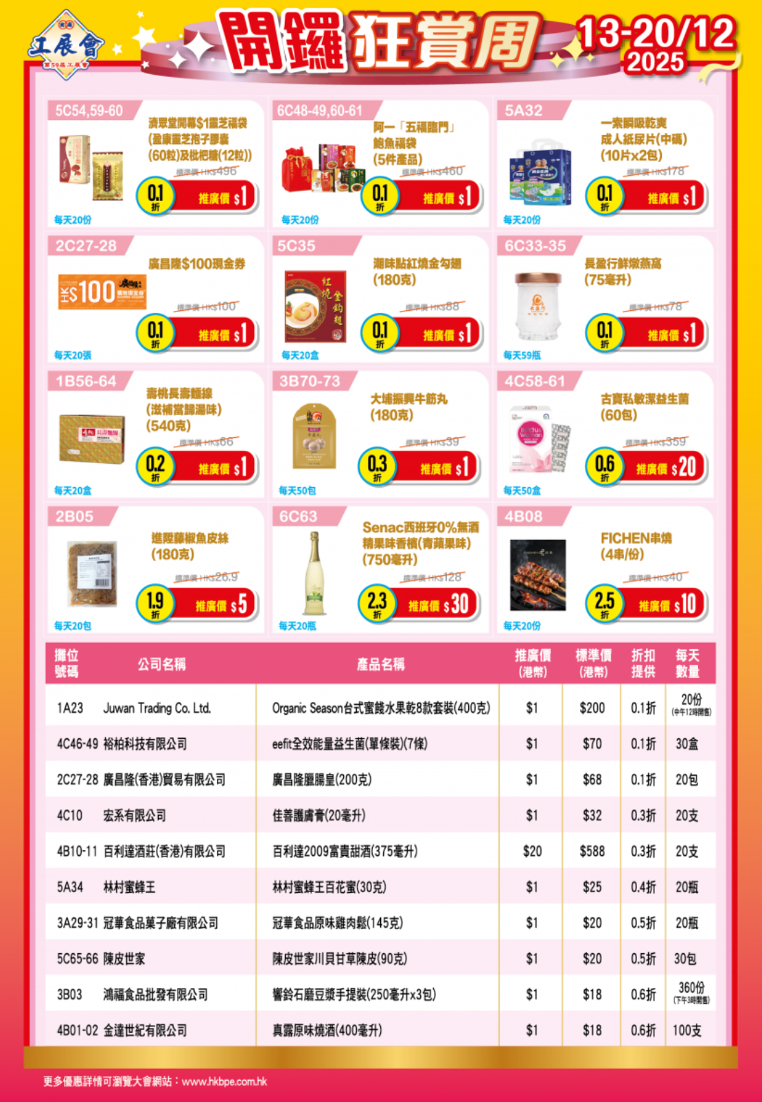 【工展會/2025/展區/攤位/購物/優惠/長者咭/折扣/鮑魚福袋】第59屆工展會將於本周六(13日)開鑼,全場設有12大展區,亦有不少舞台精彩活動,本文亦整合部分購物優惠,包括1元購鮑魚福袋、10元購蜜棗等,部分攤合更設有長者咭和樂悠咭折扣。