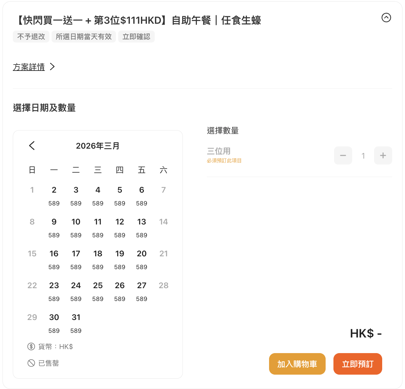 早前介紹過嘅沙田萬怡酒店自助餐優惠,包括買一送一及第3位只需加HK$111,優惠期喺今日有更新,預訂日期去到今個月尾,而使用期去到3月底。幫大家檢視過預訂情況,自助晚餐基本上已經所剩無幾,不過最平價嘅自助午餐反而仲有位,平日入座HK$589三位用,即平均HK$196位,就可以任食烤南澳洲36° MB2 金奬牛肩胛肉、沙田雞粥、生蠔等美食,超平!
