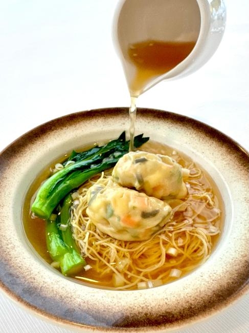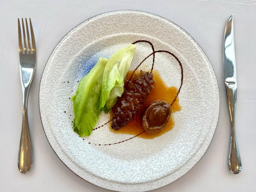 菜式方面,午市九道菜佳餚盛宴非常抵食,除咗因為有9道菜,包括波士極品灌湯餃、煙燻流心蛋、松露脆皮豬、香辣避風塘燒賣、 熊貓雞包仔、大澳艇家蝦醬炸雞翼、蛋白帶子粒炒飯、班蘭椰汁糕、是日精選糖水,最緊要係可以觀賞到維港日間靚景,都只係HK$198位,所以午市係必搶項目。而晚市一品鮑魚海參六道菜盛宴嘅菜式會較為矜貴,例如食到生磨杏汁白肺 湯、75 頭日本吉品鮑魚拼原條美國遼參、紅燒 BB 乳鴿 (每位半隻)等,仲會包紅酒、白酒或有氣葡萄酒每位一杯。