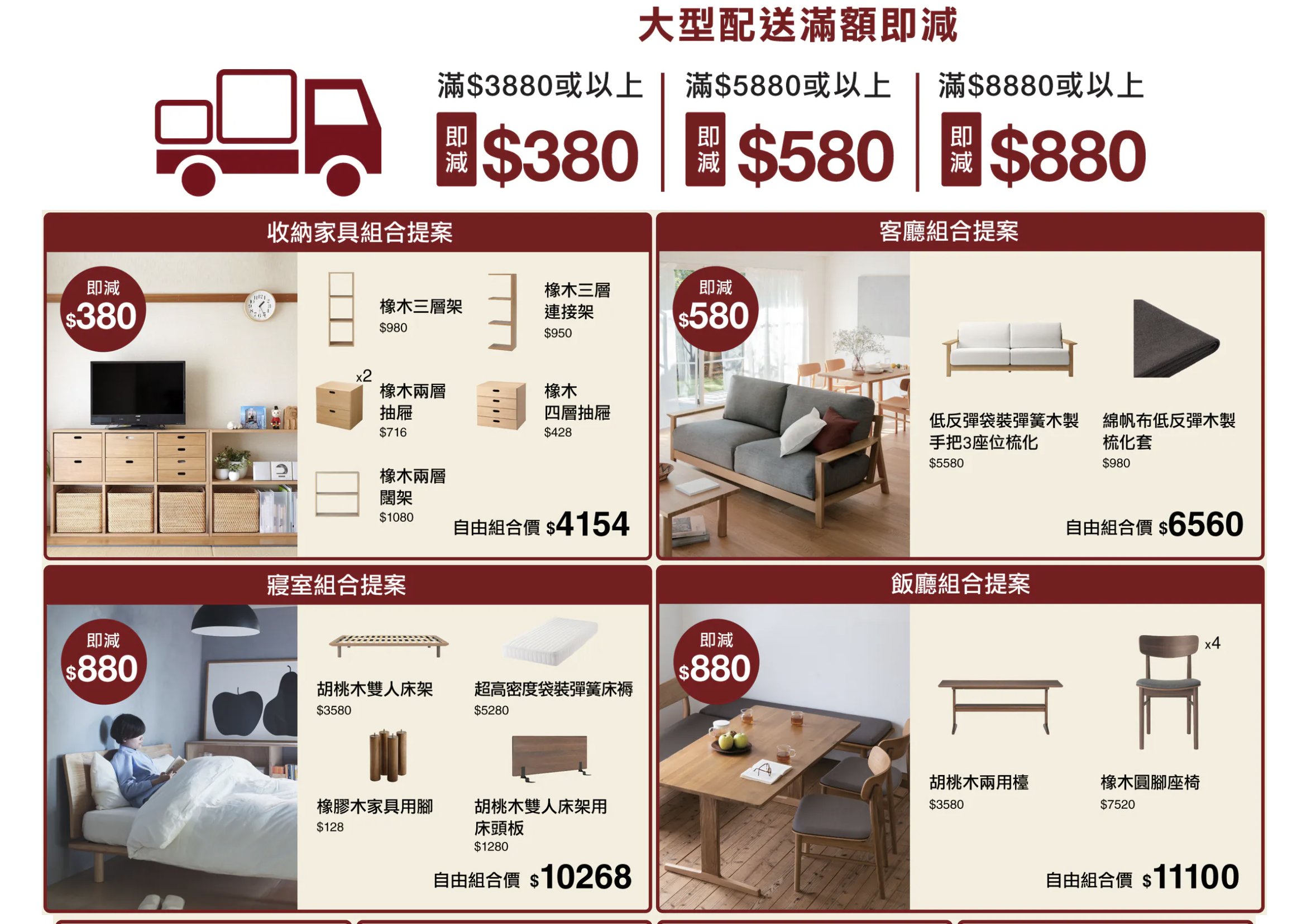 - 禮遇一:滿額即減 每單最高享$880折扣,掃貨大單最抵。