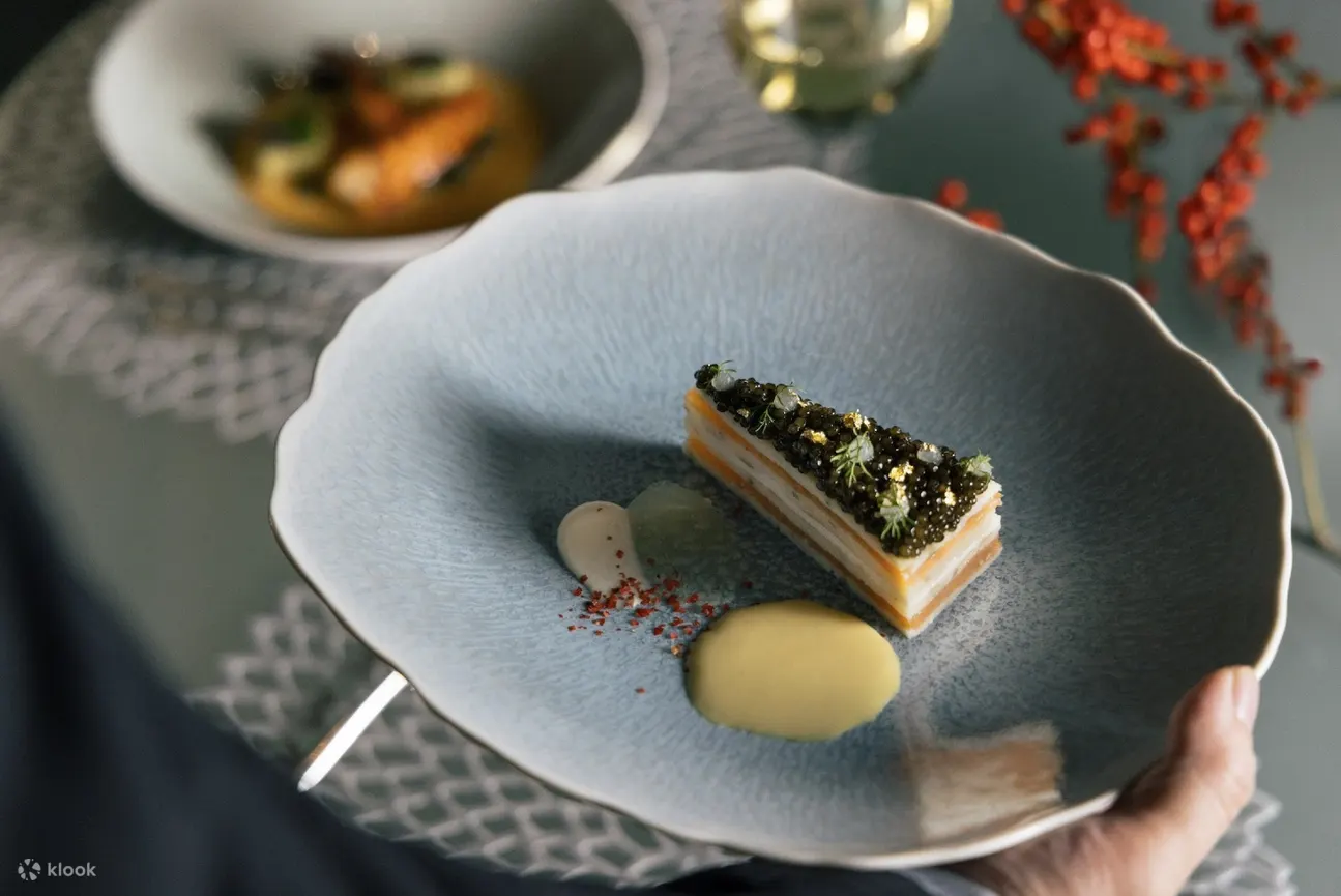 而食到四道菜嘅海鮮晚餐就有91折著數,除咗多一款頭盤享用之外,仲包一杯佐餐酒、雞尾酒或無酒精調酒。喺91折優惠下,原價HK$1,065位,折後HK$968。每晚都有3個時段俾大家選擇,包括8點、8點15分及8點半,用餐時間為2小時,對住維港夜景抵美食。