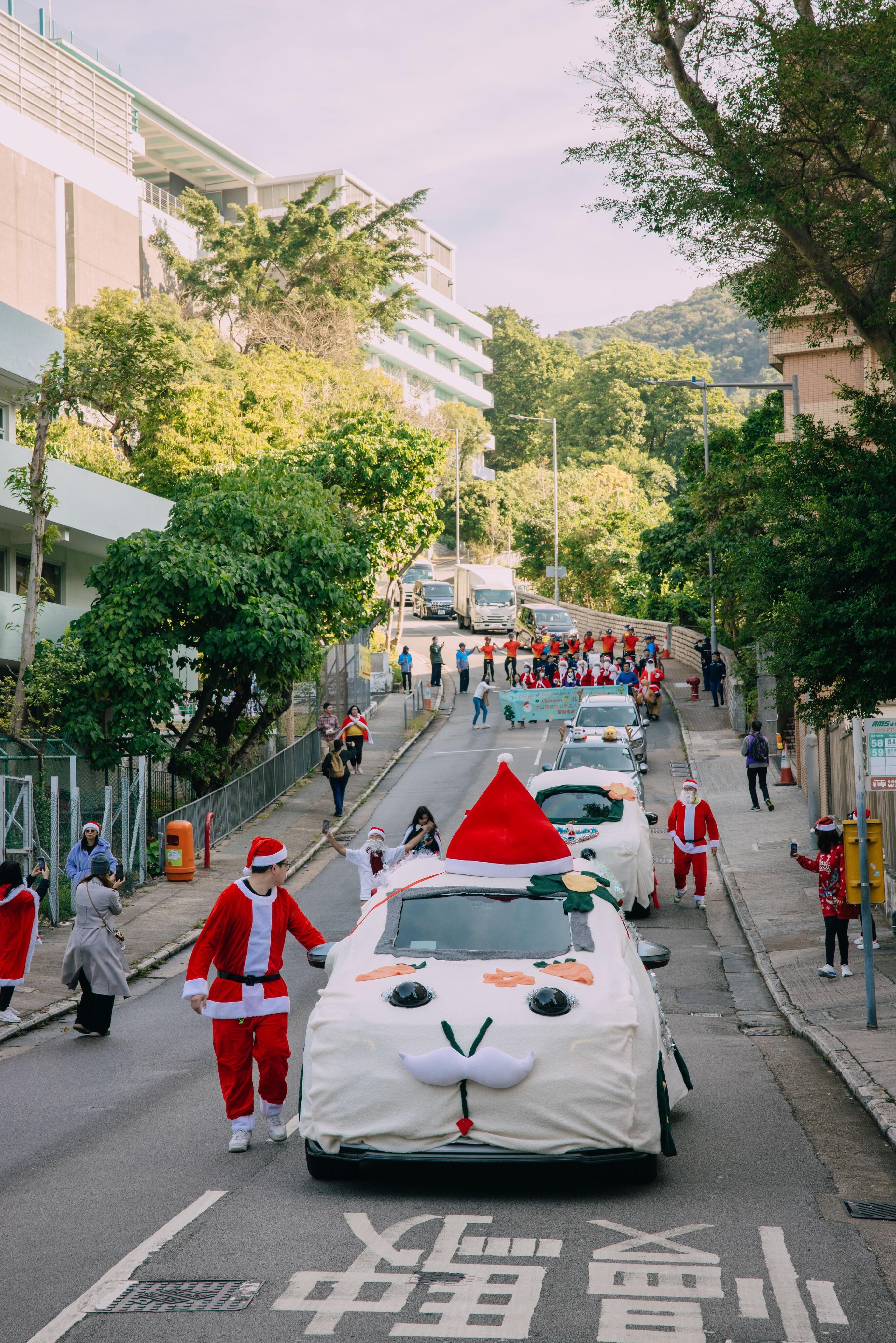 大口環根德公爵夫人兒童醫院今年恢復傳統,醫護人員化身聖誕老人及卡通人物,乘坐動物造型的特色車輛舉辦巡遊,並在聖誕小狗陪同下探望留院病童。醫院在花園舉行派對,安排魔術、小鼓隊及花式單車表演,並有集體遊戲及頌唱聖詠環節。醫護人員又向小朋友大派禮物和安排聖誕大餐,為他們帶來一個歡樂的聖誕日。![]()