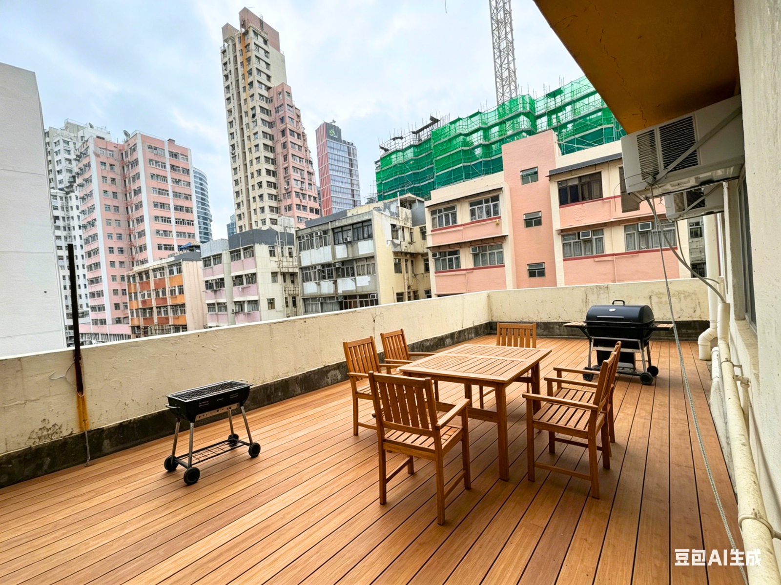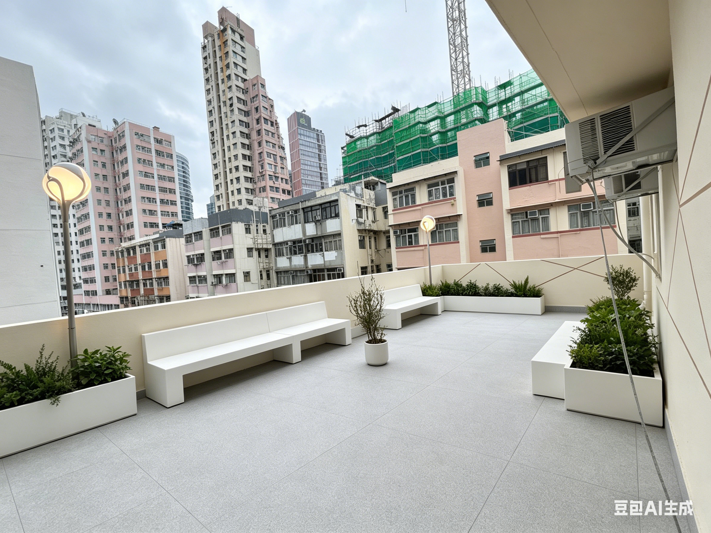 大家咪以為呢個平台無乜用,其實平台嘅環境都幾開揚,同附近樓宇嘅距離未算好大壓逼感。小編手痕幫大家AI設計一番,將平台設計幾個不同風格,變成一個幾Chill嘅休息空間,有興趣嘅朋友不妨參加一下。