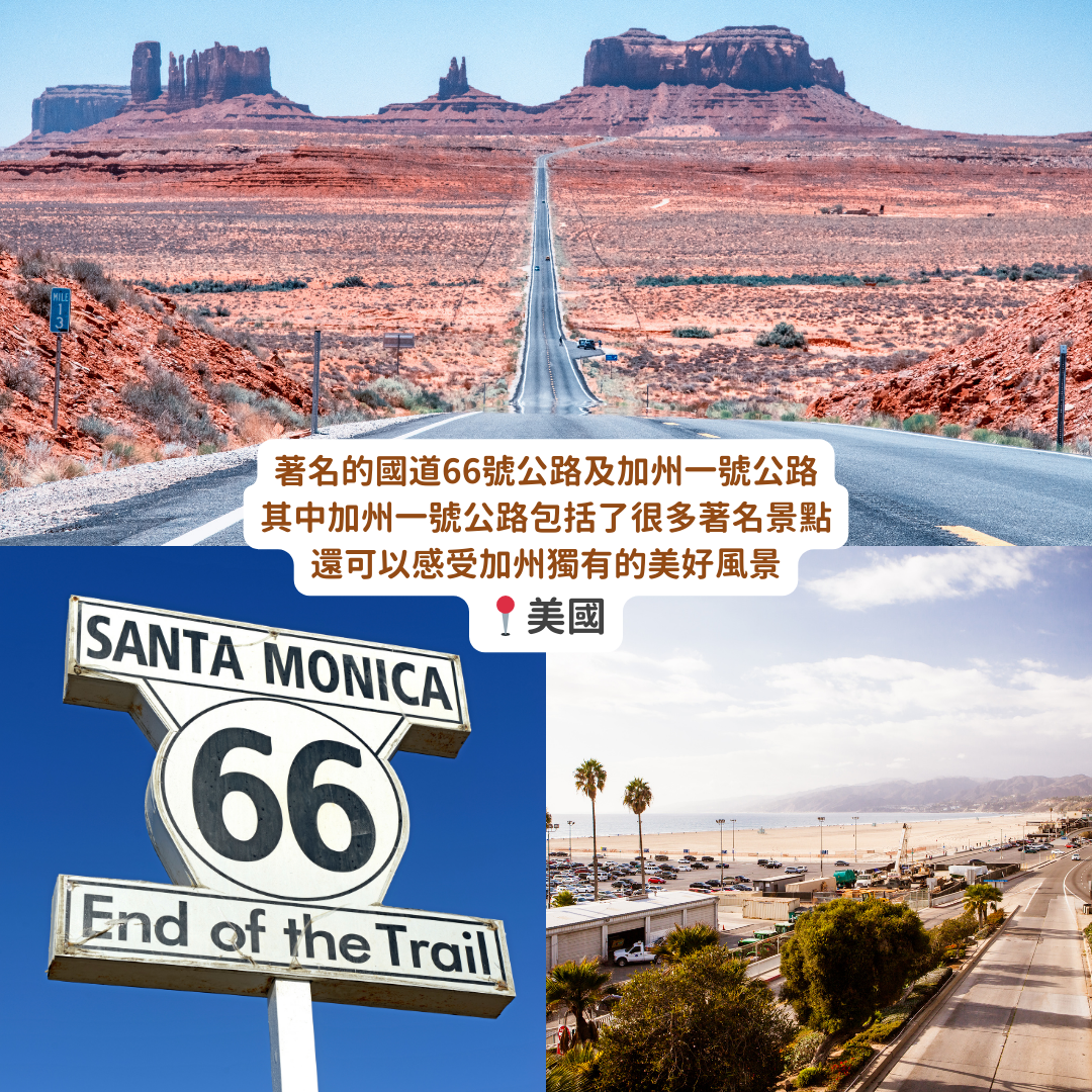 著名的國道66號公路及加州一號公路