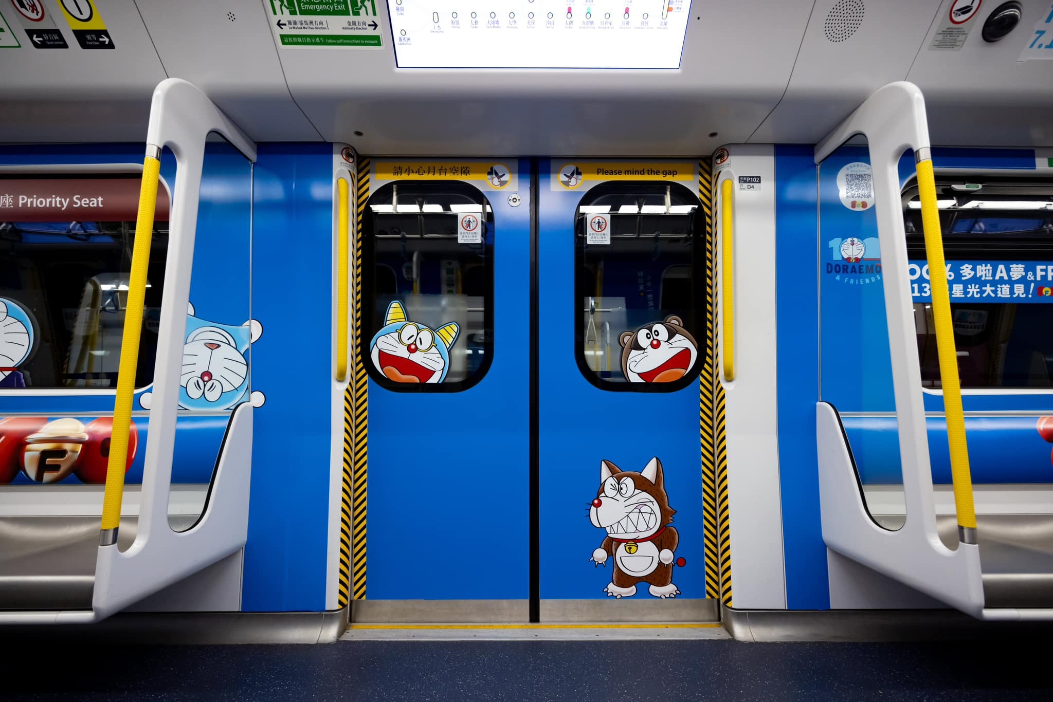 港鐵宣布,由今日起推出輕鐵兆康站「多啦A夢主題月台」及「100%朋友召喚鈴」為主題的三列期間限定列車。港鐵表示,主題列車將會分別遊走輕鐵及機場快綫等地,為乘客旅程更添歡樂及姿彩。