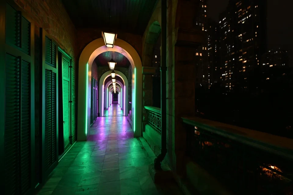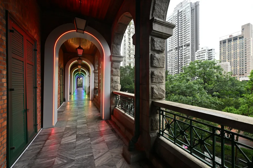 不過,一向帶點陰森的高街鬼屋,最近開展了關於愛情主題的光影藝術展,透過燈光表演表現浪漫氛圍,加上悠揚樂韻,配合古蹟的特色拱門,讓參觀者感受情侶從邂逅至相戀的愛情故事,同時可以細味這地標建築的歷史故事。