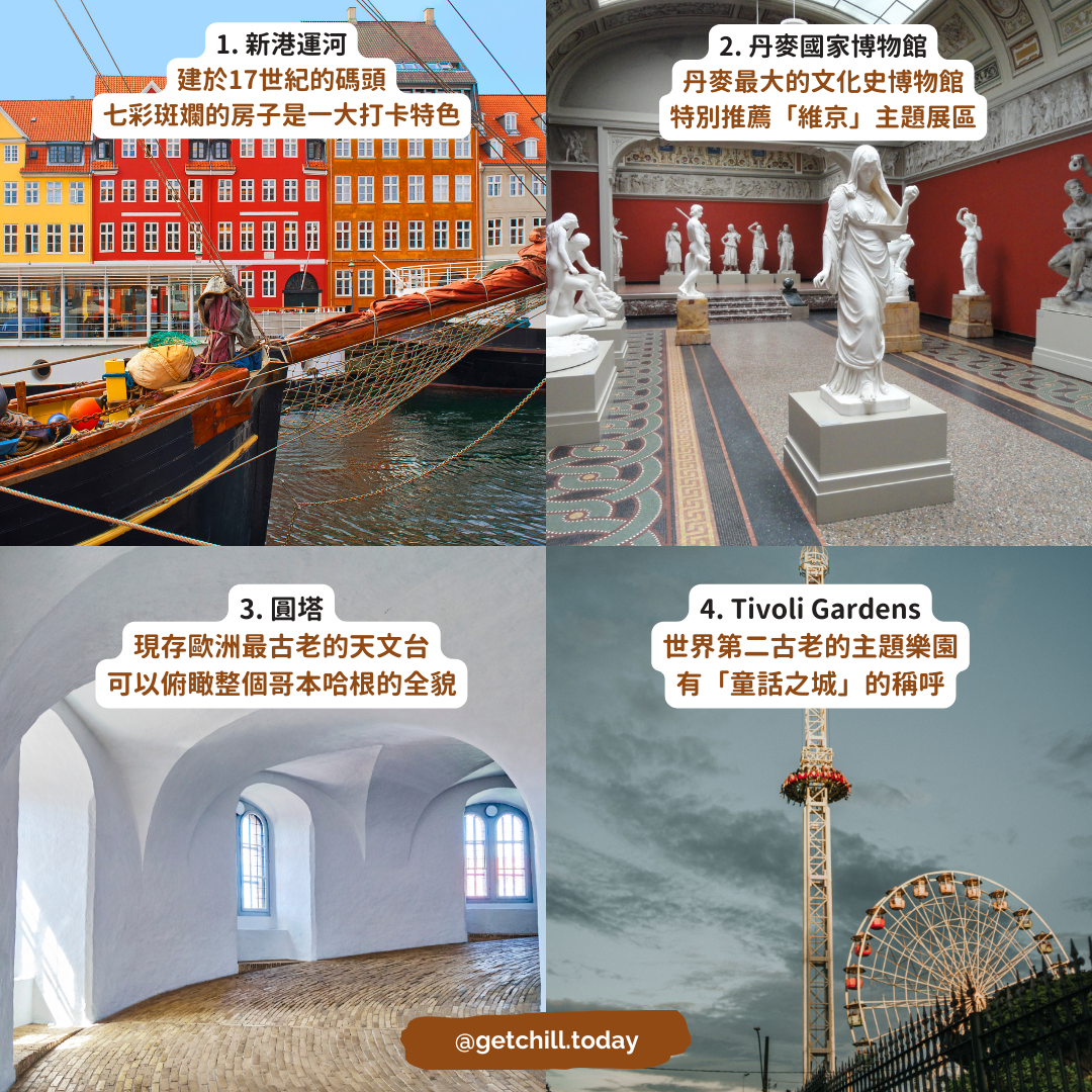- Tivoli Gardens:世界第二古老的主題樂園,被稱為「童話之城」。這裡有美麗的花園、刺激的遊樂設施和各種文化活動,適合家庭和情侶。