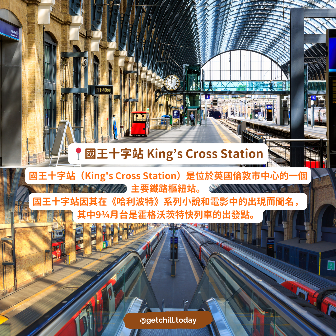國王十字站(King’s Cross Station):位於英國倫敦市中心,是一個重要的鐵路樞紐站。因為《哈利波特》中的9¾月台而聞名,是霍格沃茨特快列車的出發點。