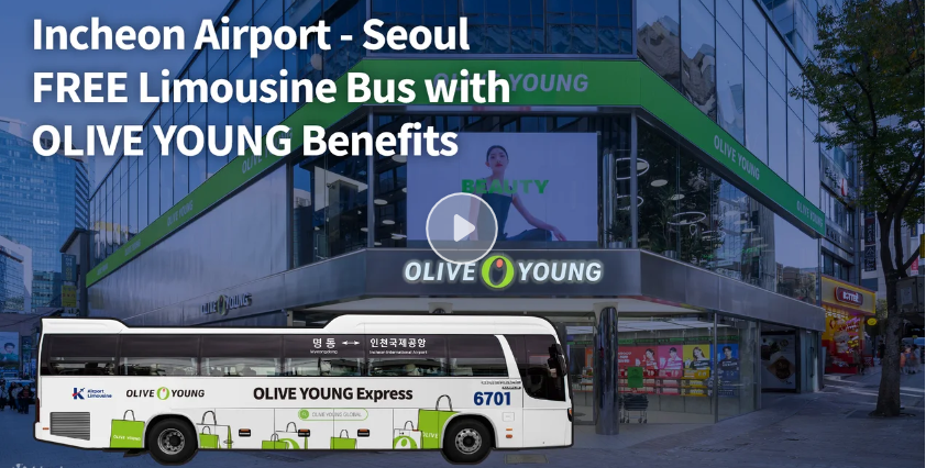 從即日起經預約後即可搭乘 OLIVE YOUNG 免費機場巴士從仁川機場 T1 到明洞體驗韓國。