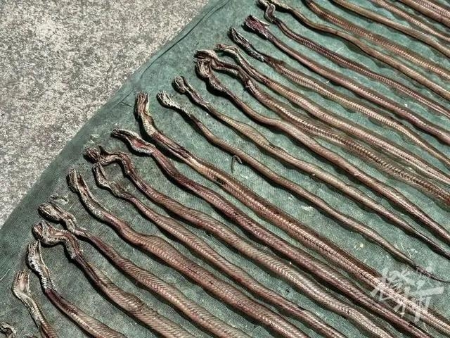 子思橋村主要養殖蝮蛇、赤鏈蛇、烏梢蛇等品種。蛇蛋、蛇毒、蛇膽、蛇幹、蛇皮、蛇腸……這裡的蛇幾乎每一個部位都被充分利用,形成了一條完整的產業鏈。特別是蝮蛇毒素,作為高效抗血栓藥物的原料,價值不菲。