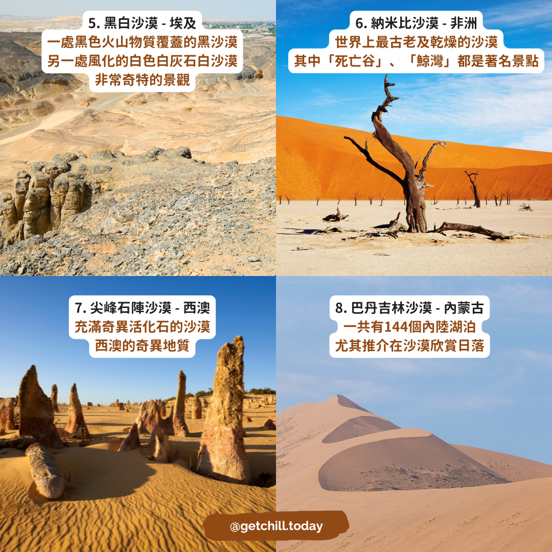 6. 納米比沙漠 - 非洲:世界上最古老及乾燥的沙漠,其中「死亡谷」、「鯨灣」都是著名景點