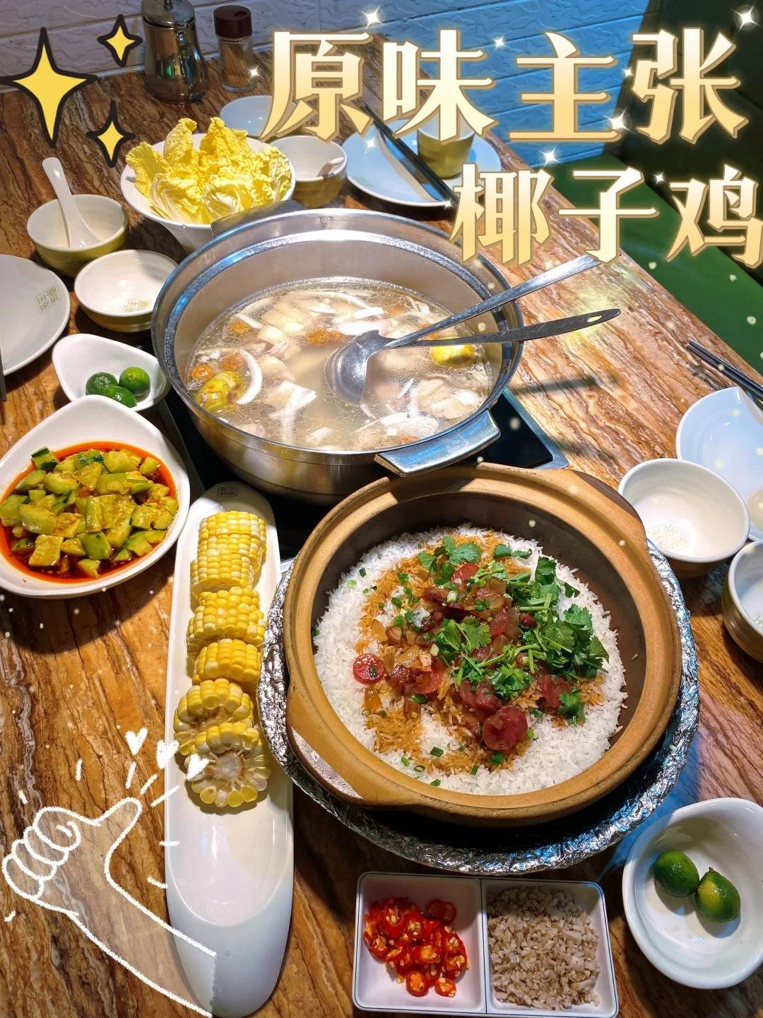 - 原味椰子雞鍋:全天然椰子水搭配海南文昌雞,肉質皮脆肉滑。