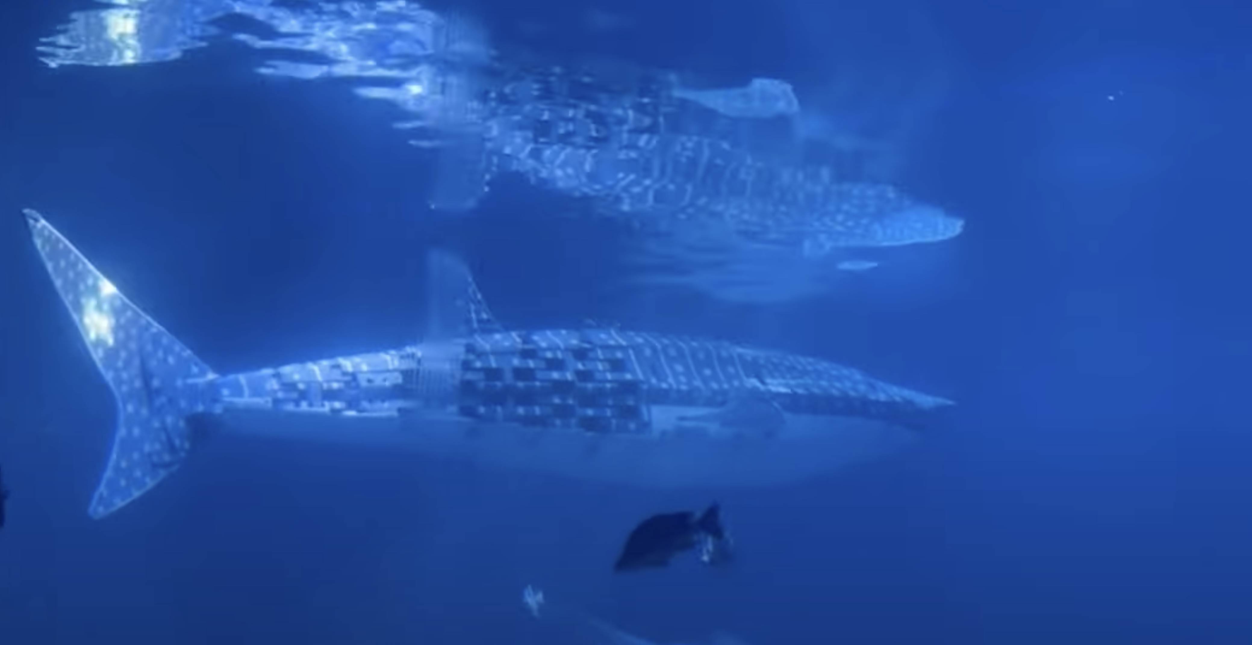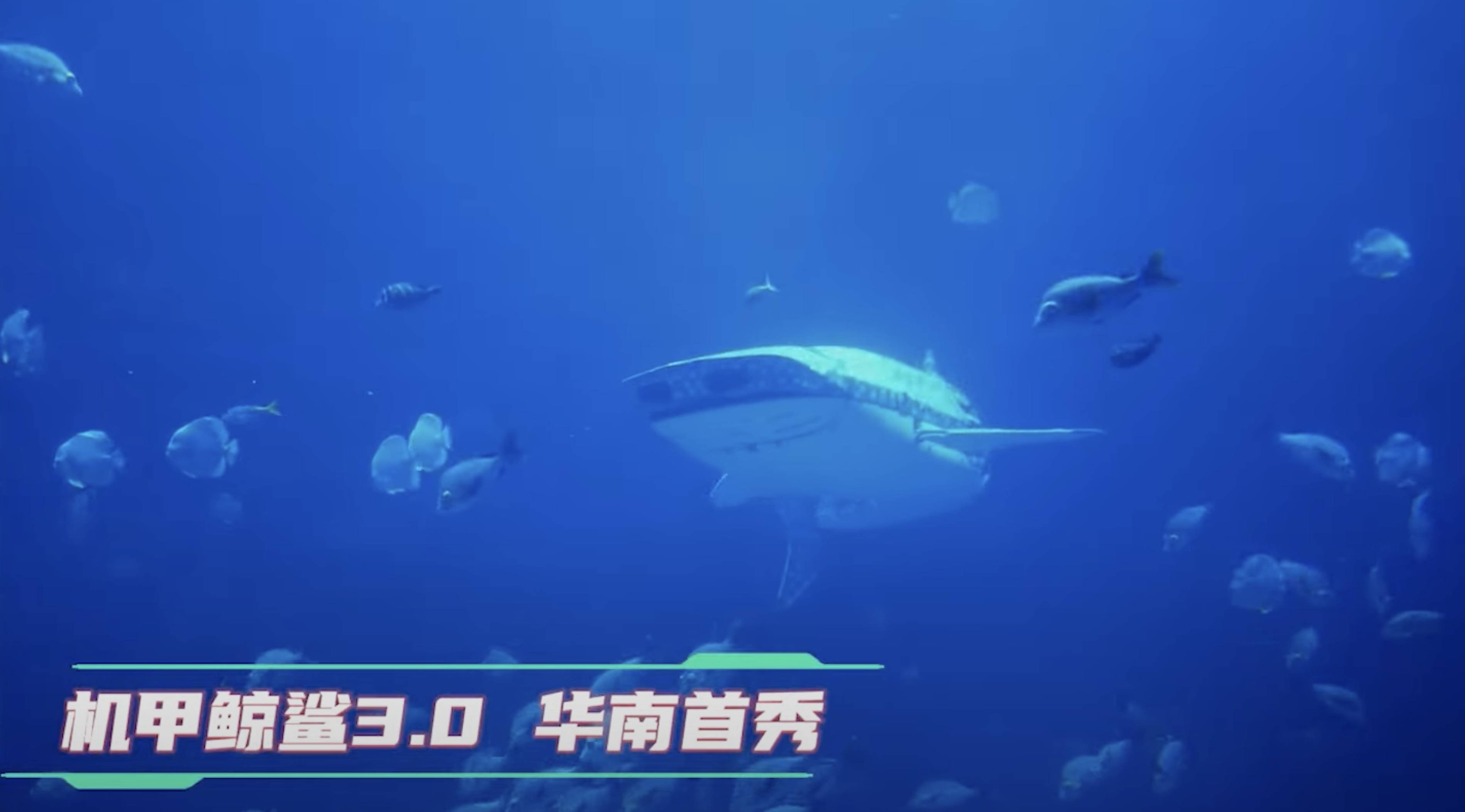 館方表示示其真實身份,這條機械鯨鯊名為機甲鯨鯊 3.0,它設有人工智能技術,能摸仿鯨鯊水中活動,這條機械鯊魚更搭載科研儀器協助海洋研究。據館方表示,製作這機械鯨鯊全因活鯨鯊交易已被禁止,為了保護生態,所以花數百萬元人民幣打造的。